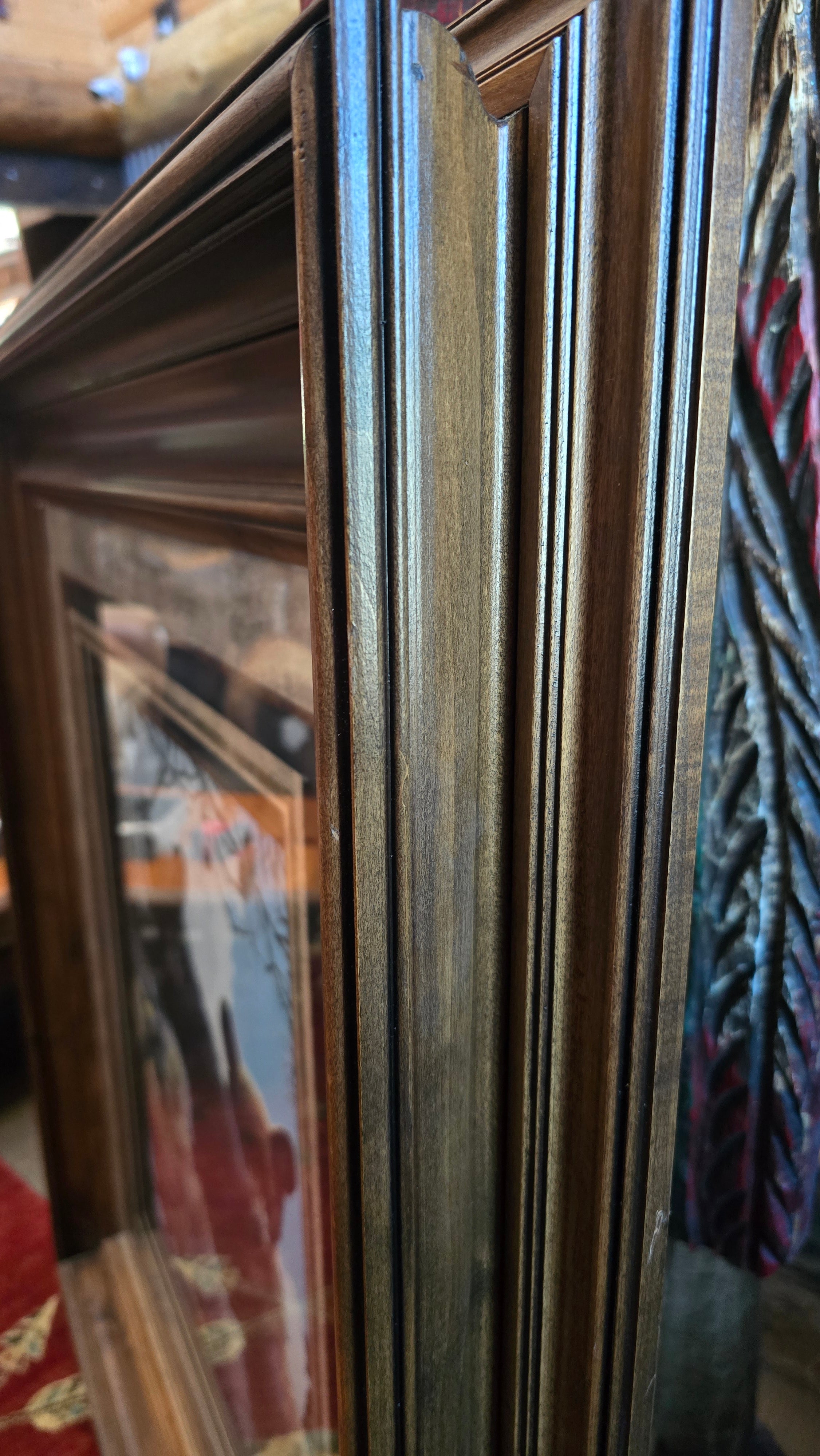 Two Black Bear Cubs Climbing in a Pine Tree with a Wood Frame