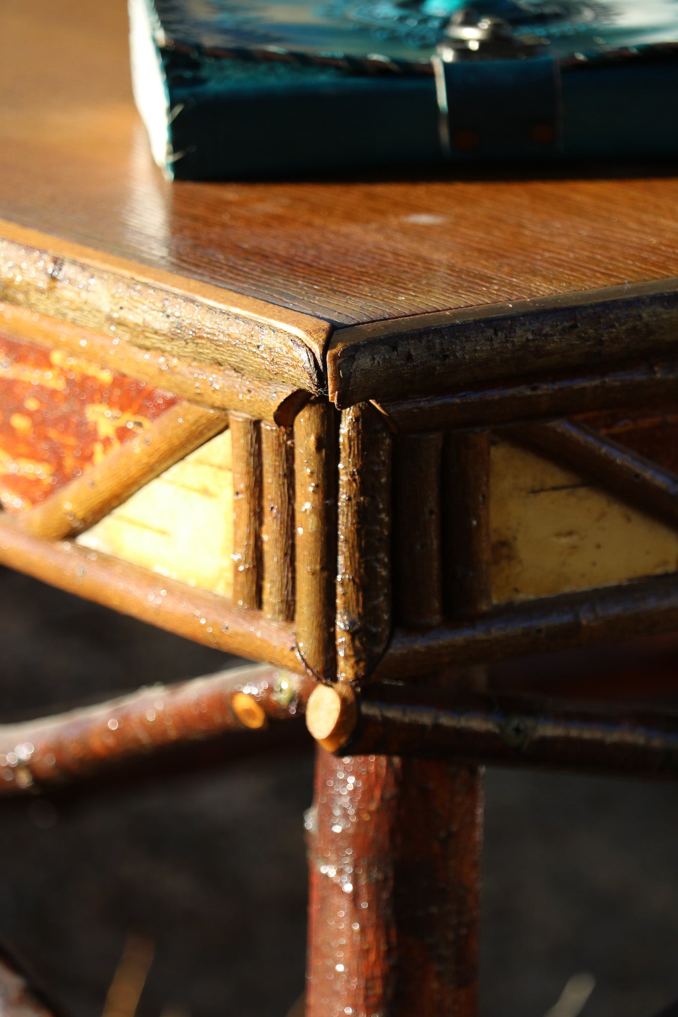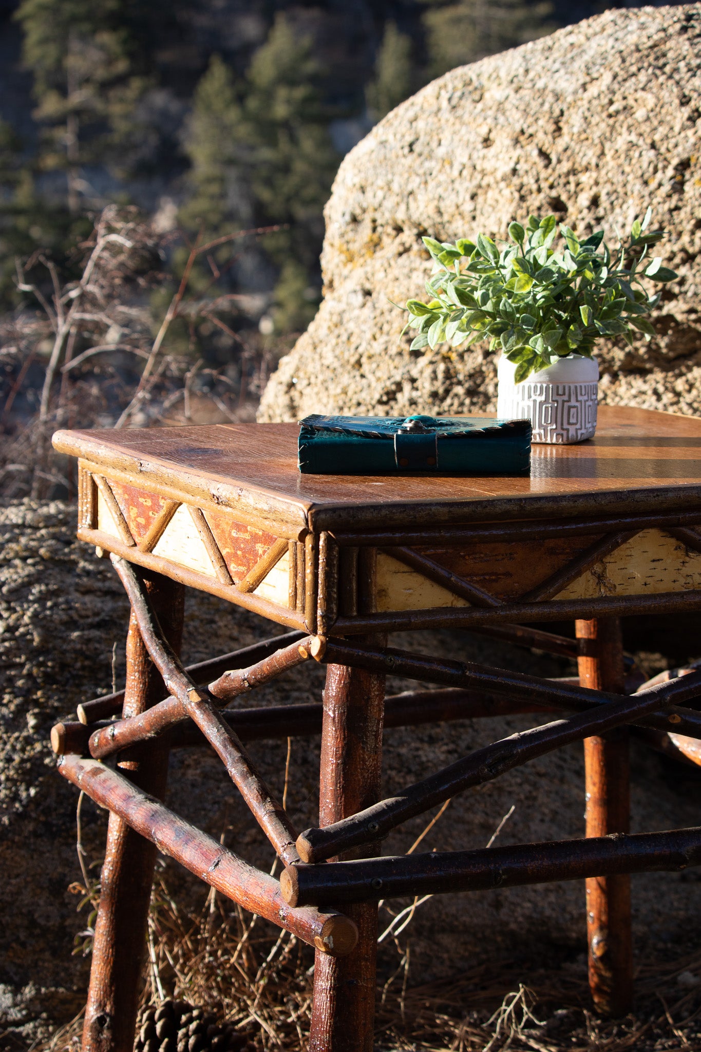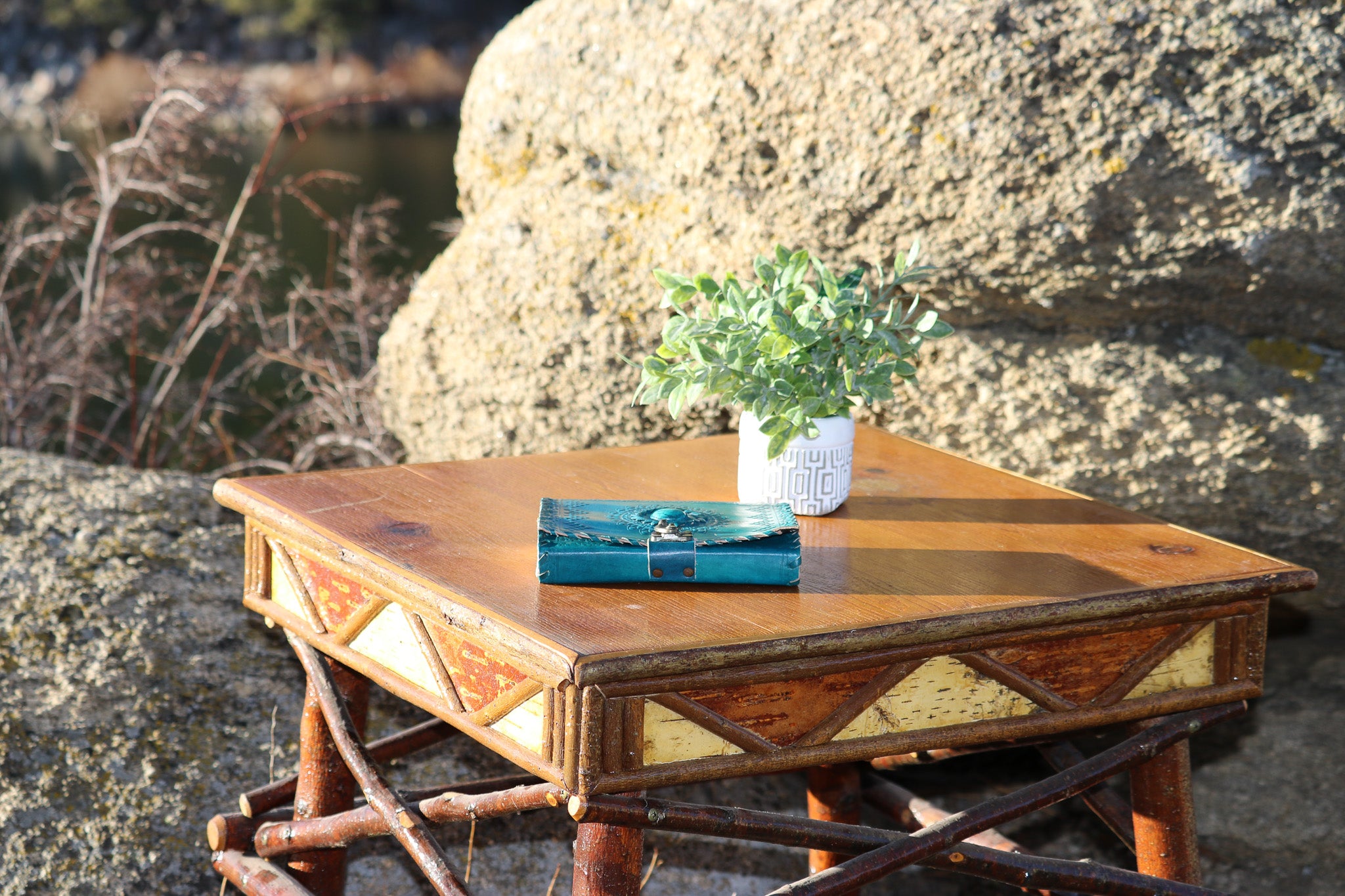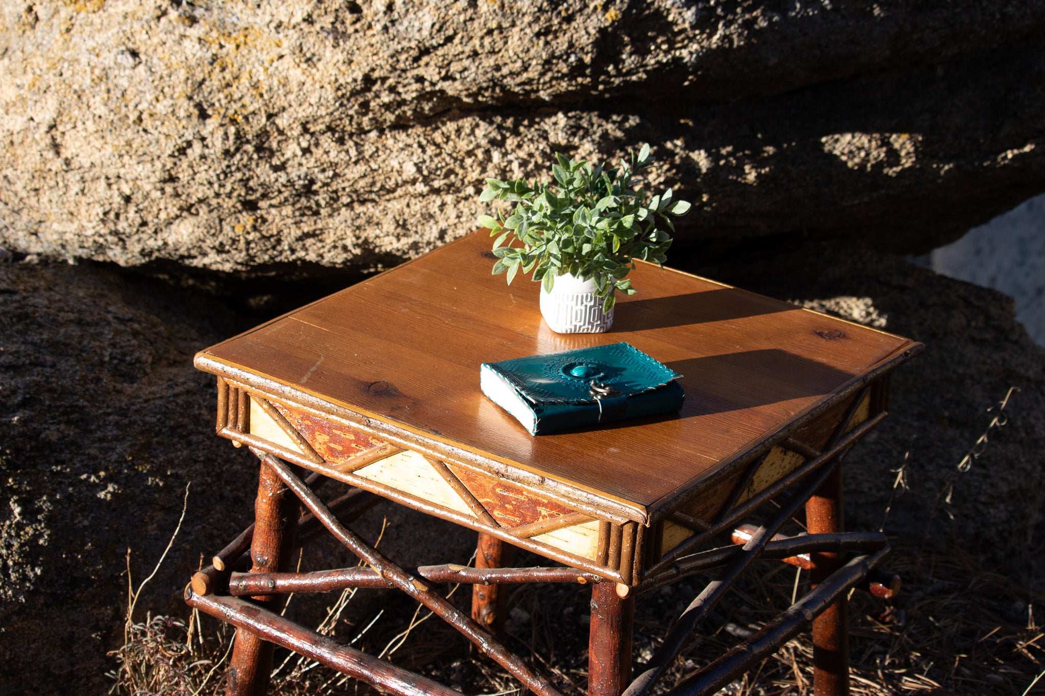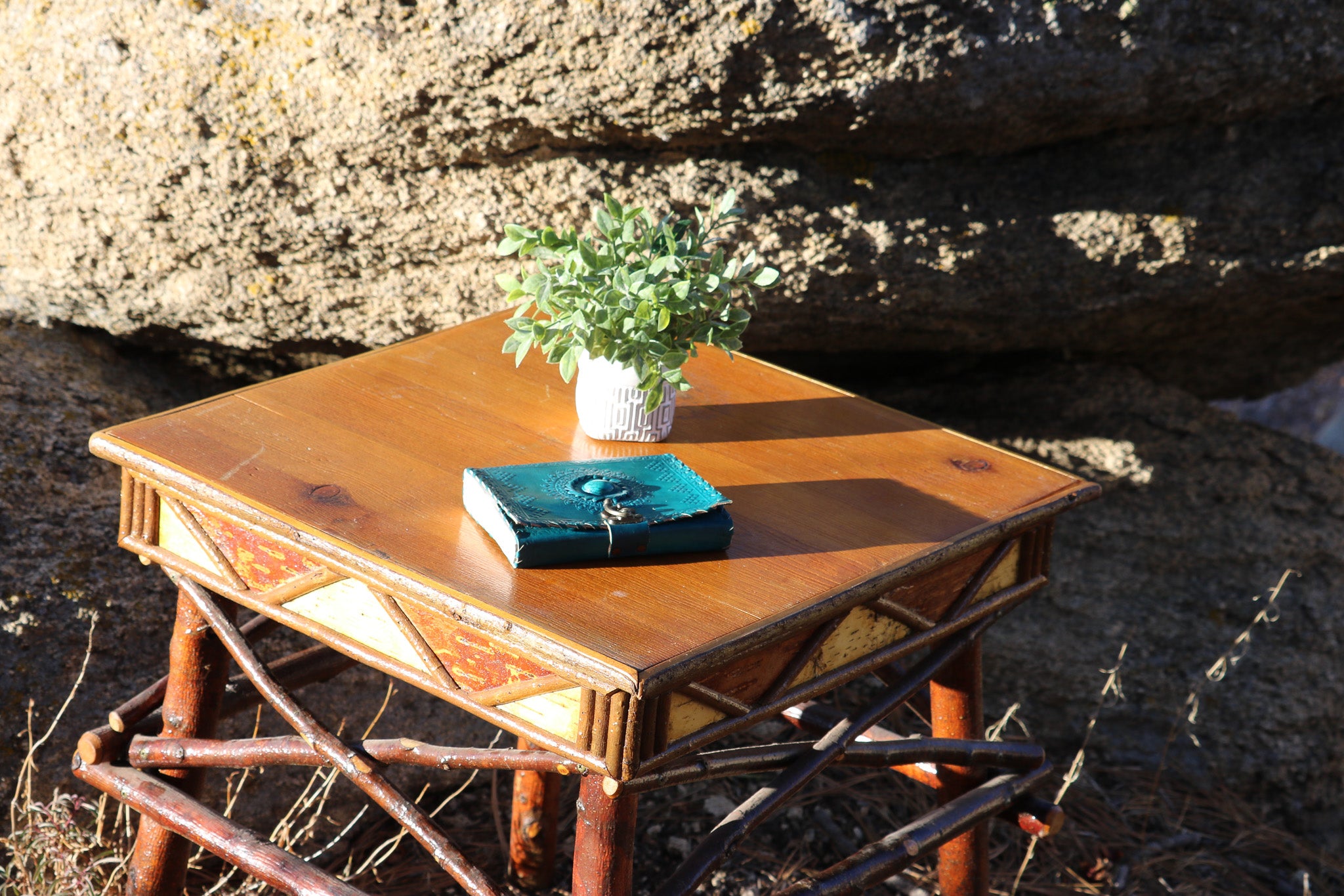 Geometric Design Adirondack Square Side Table with Raw Wood Legs
