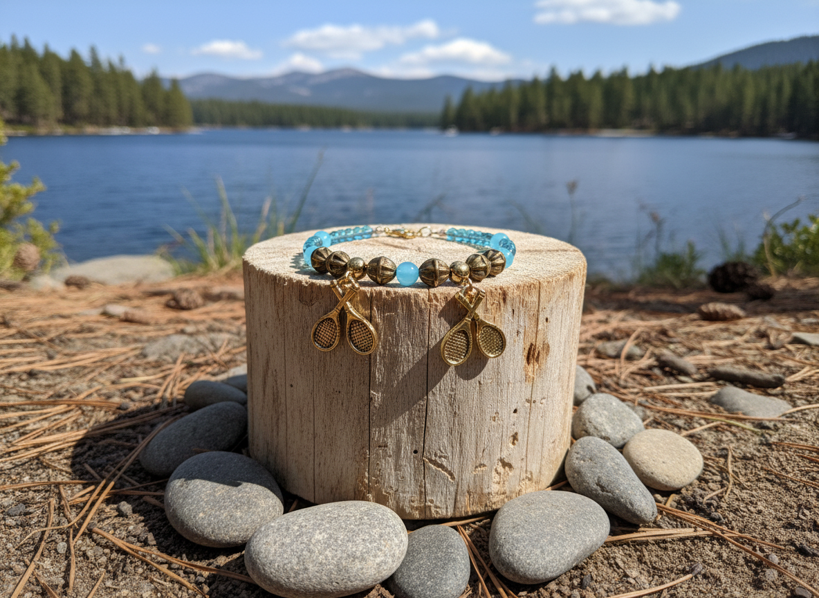 Beaded Tennis Racket Charm Bracelet