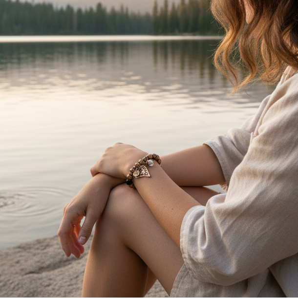 Beautiful Bronze Colored Beaded Charm Bracelet