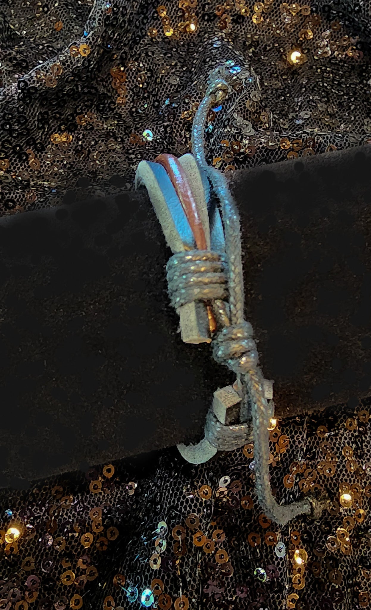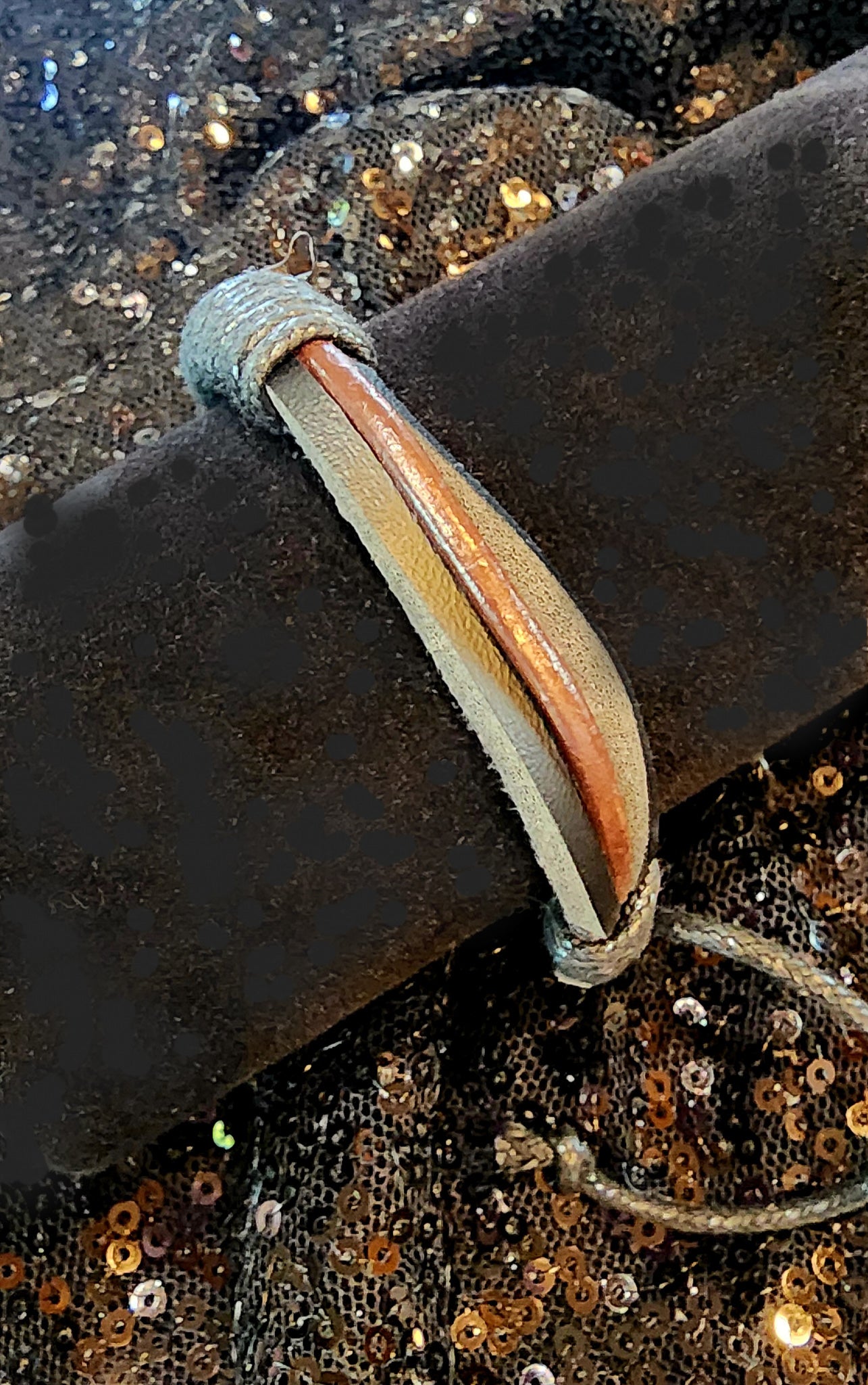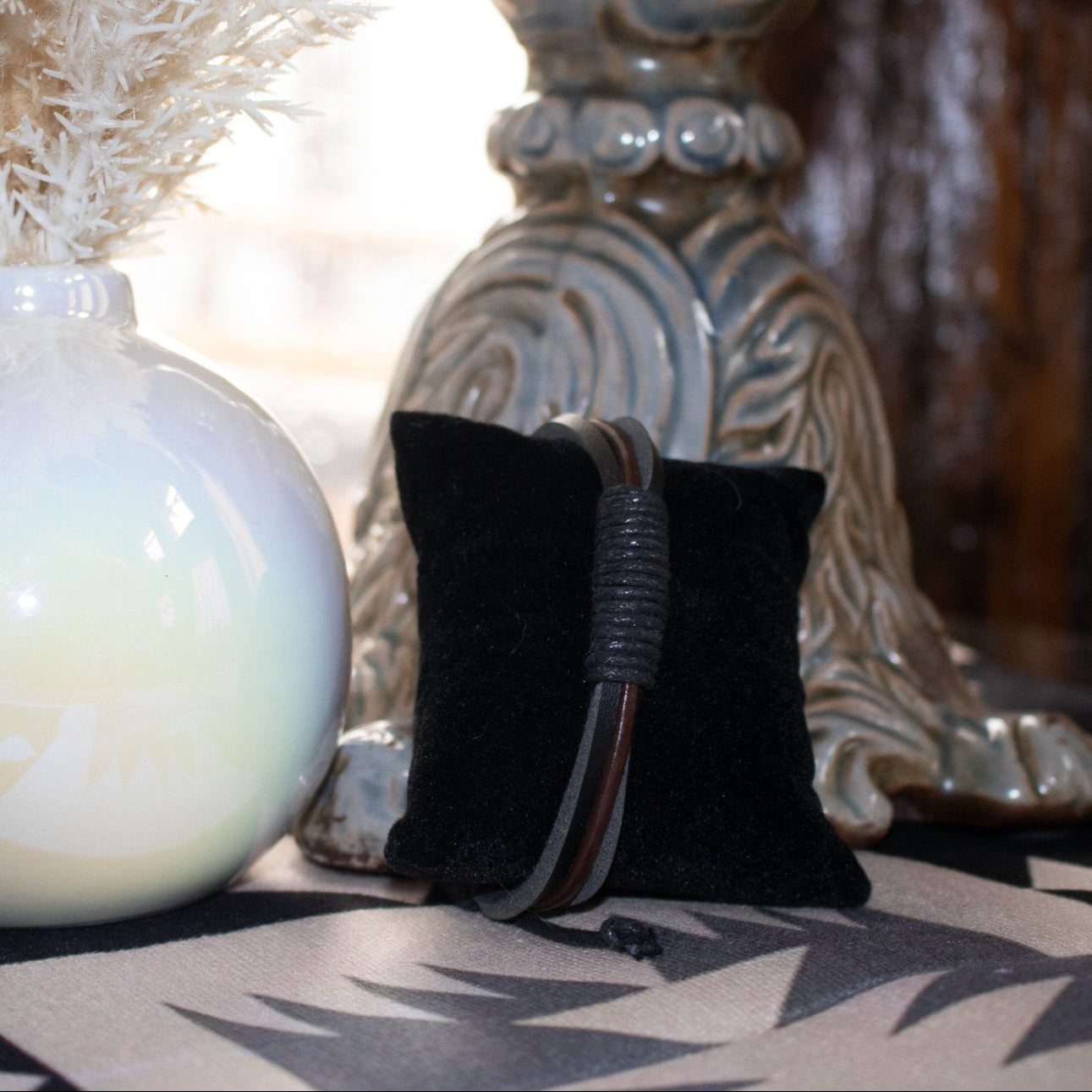 Black and Brown Leather Strap and Jute Cord Adjustable Bracelet