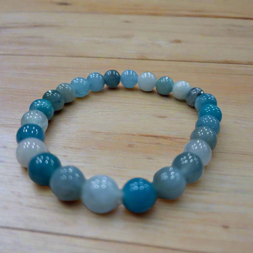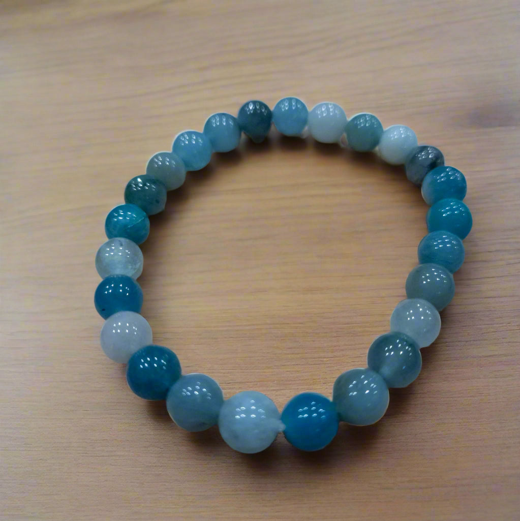 Aquamarine Stone Beaded Stretchy Bracelet