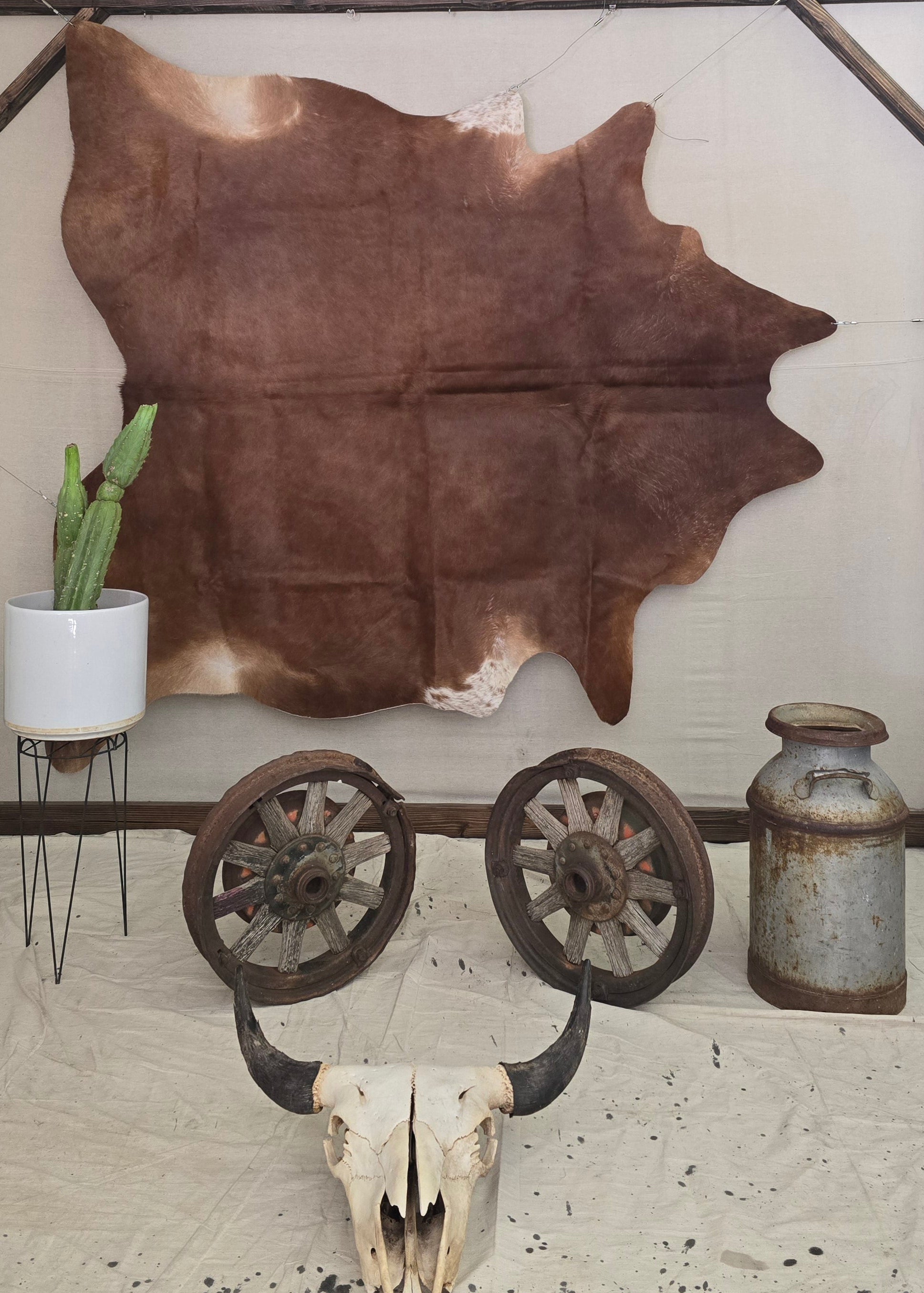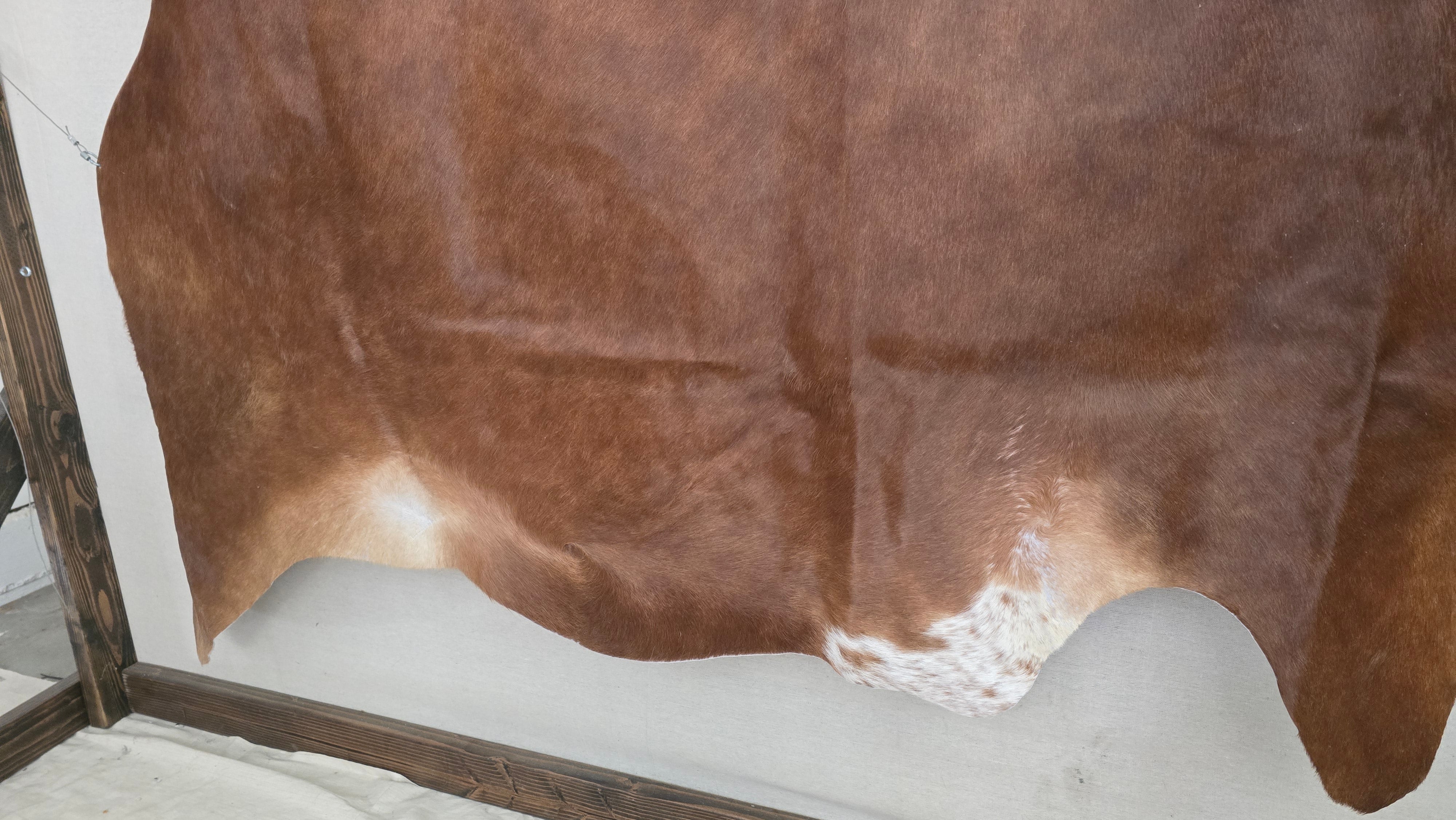 Cowhides can offer any area a beautiful pop of color to your decor. If your space is neutral, you may choose a bold color or pattern to offer a striking contrast. While using a more natural or neutral colored hide in a more colorful or vibrant space. This handcrafted Brazilian cinnamon cowhide is 7 x 6.9 feet. When choosing a placement for your cowhide consider your rooms layout and function. It can serve as a focal point or an accent piece, depending on the room's layout, size and purpose. Crafted with quality materials, this cowhide will add a touch of natural beauty to any room. Perfect for adding warmth and texture to your home decor.