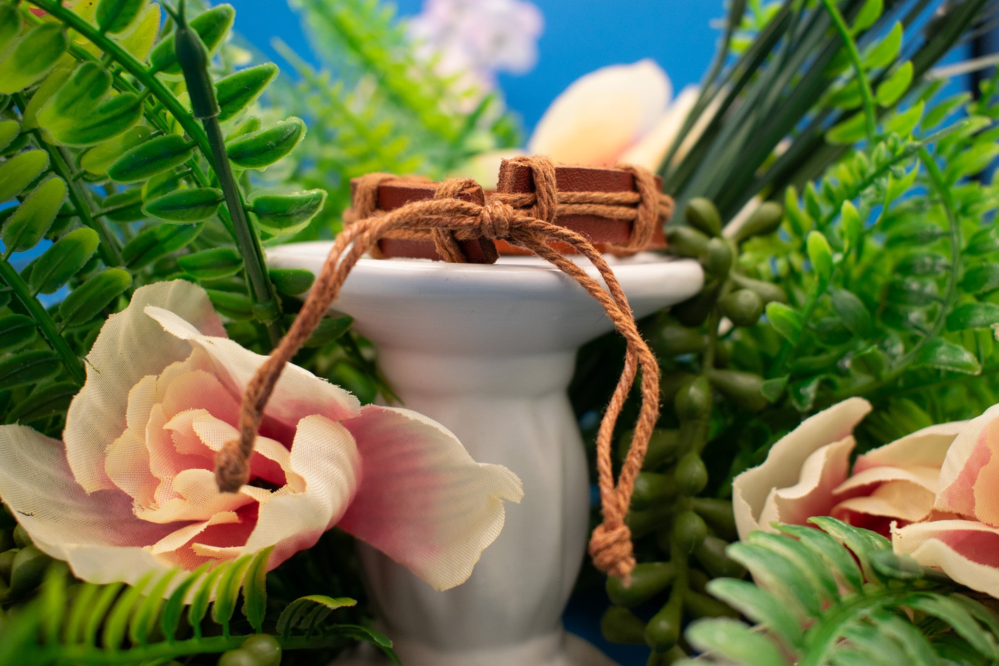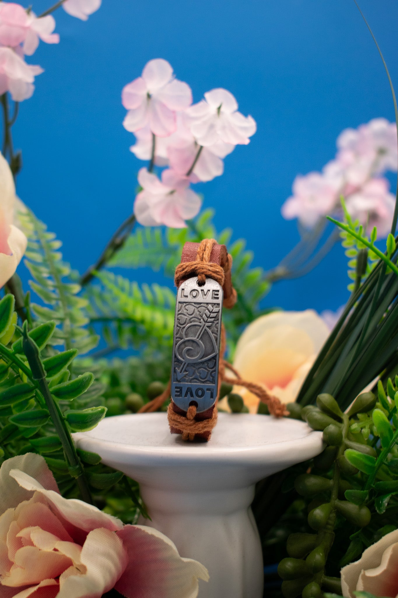 Brown Leather and Jute Cord Love Charm Adjustable Bracelet