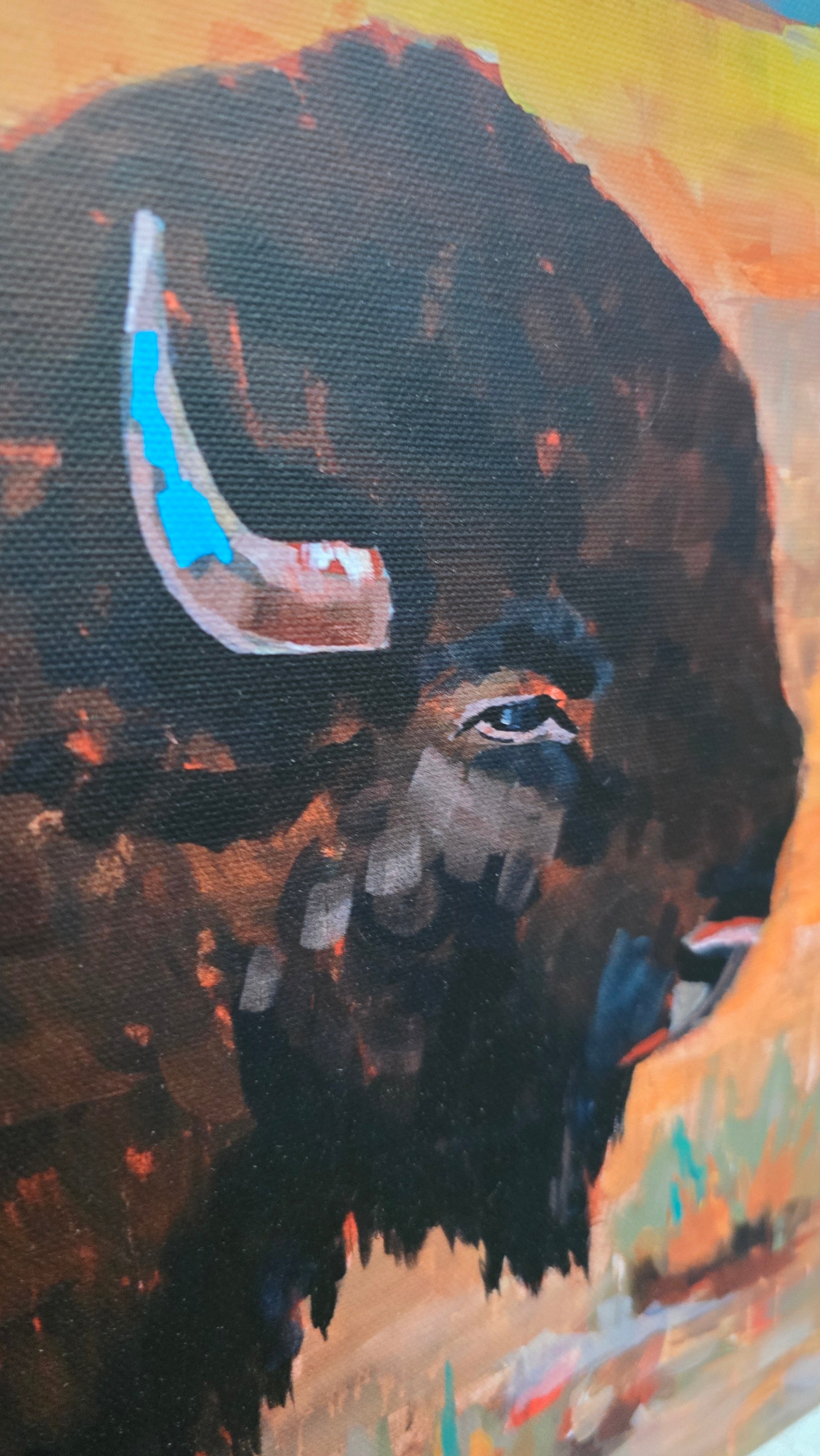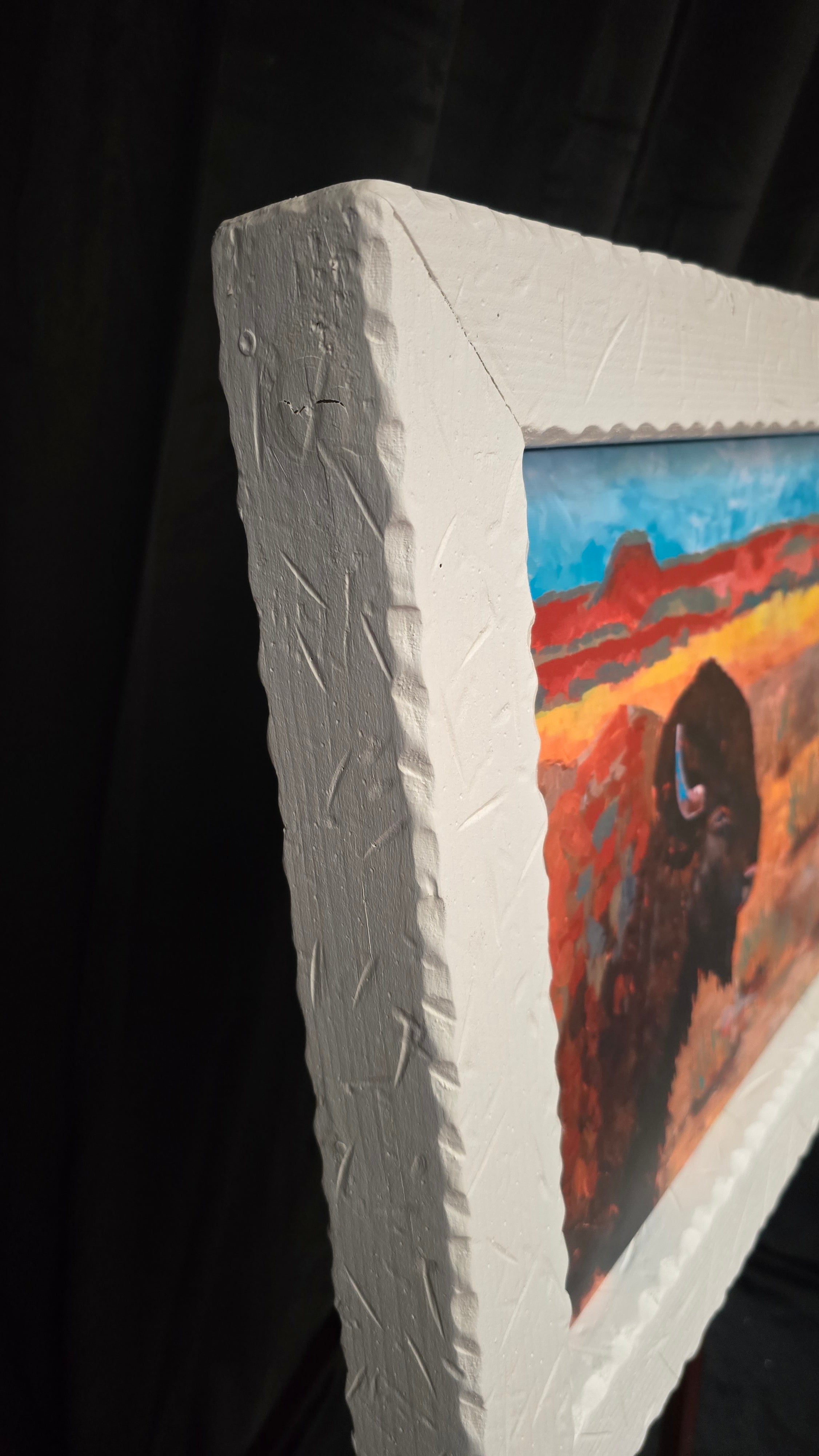 Custom White Solid Wood Framed Canvas Transfer Print of Buffalo at the Ridge