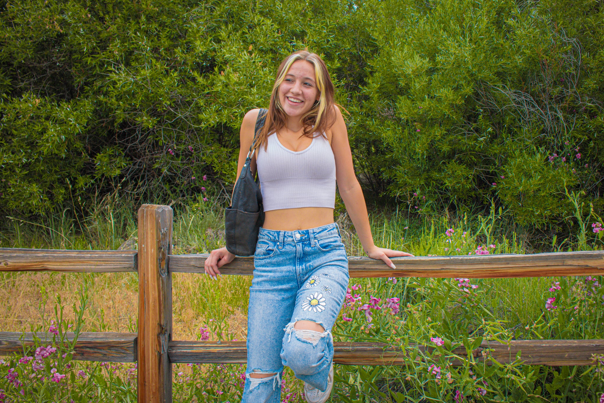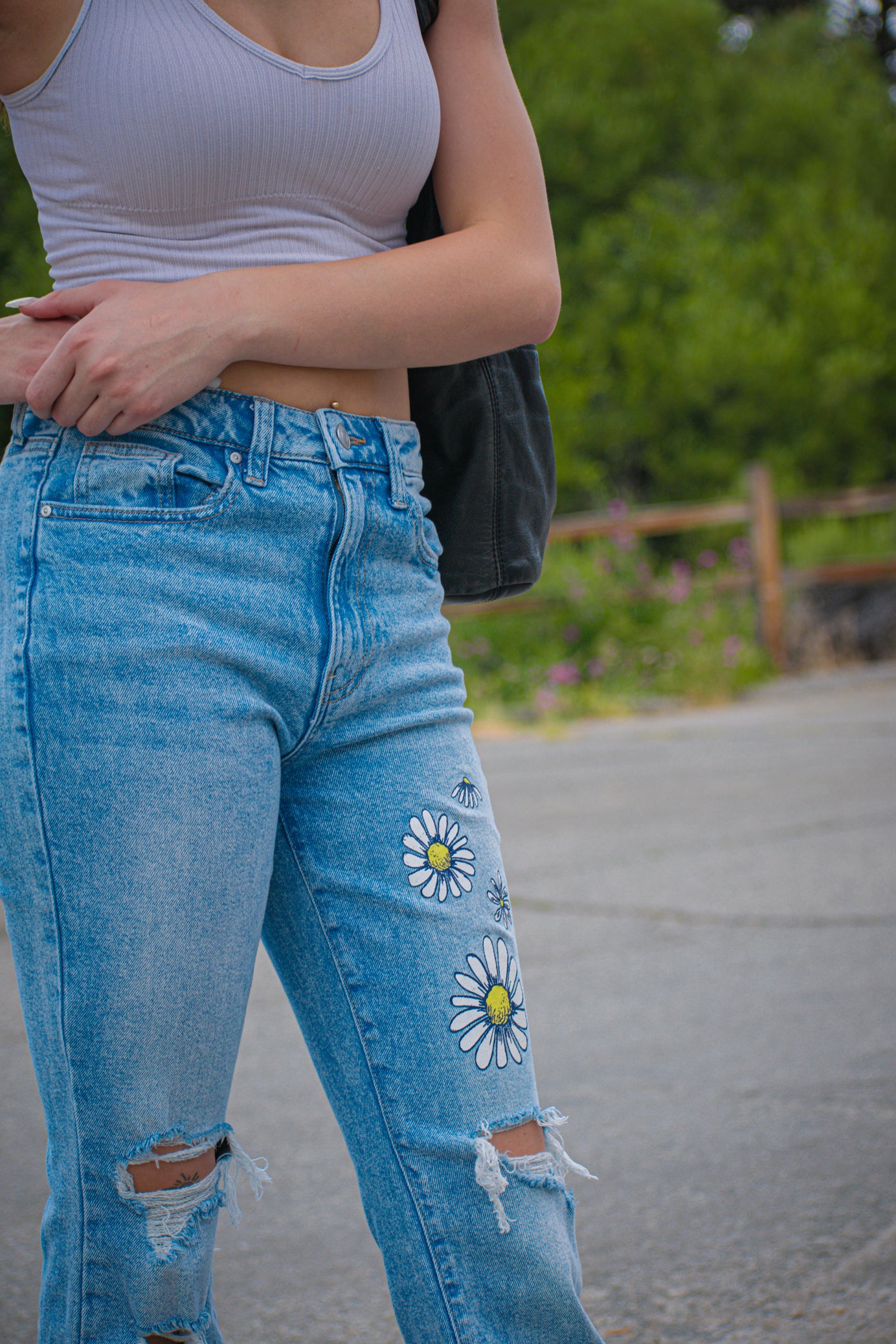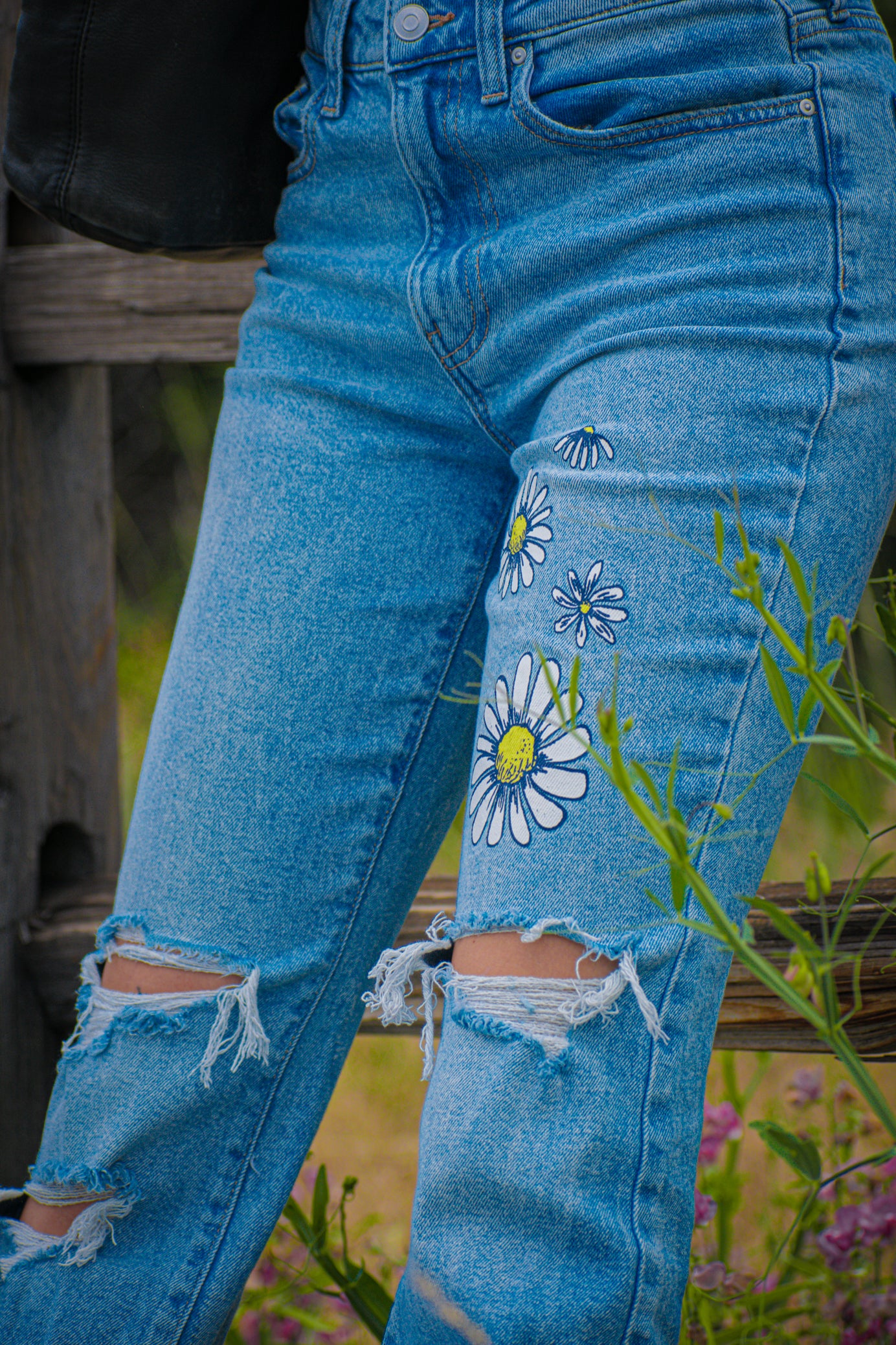 Celebrity Pink Size 3/26 Daisy Print Torn Bell Bottoms