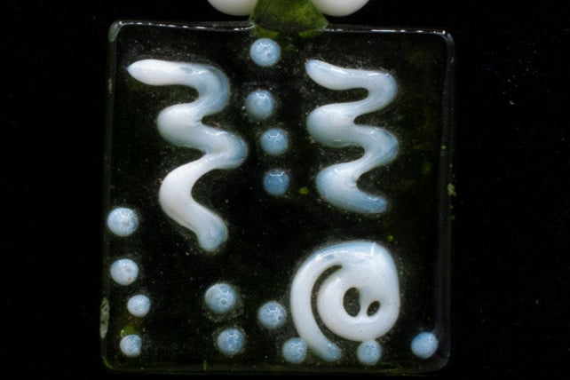 A Green Glass Pendent Adorned on a Dainty Green Beaded Necklace