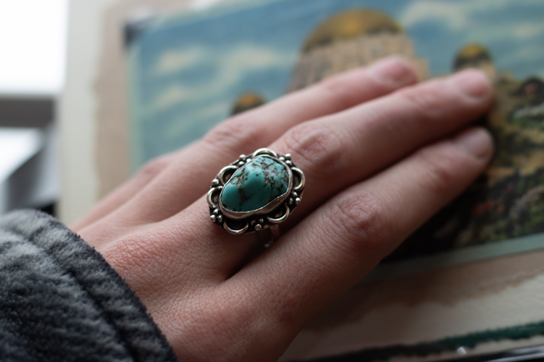 Faux Turquoise Silver Plated Ring Size 7