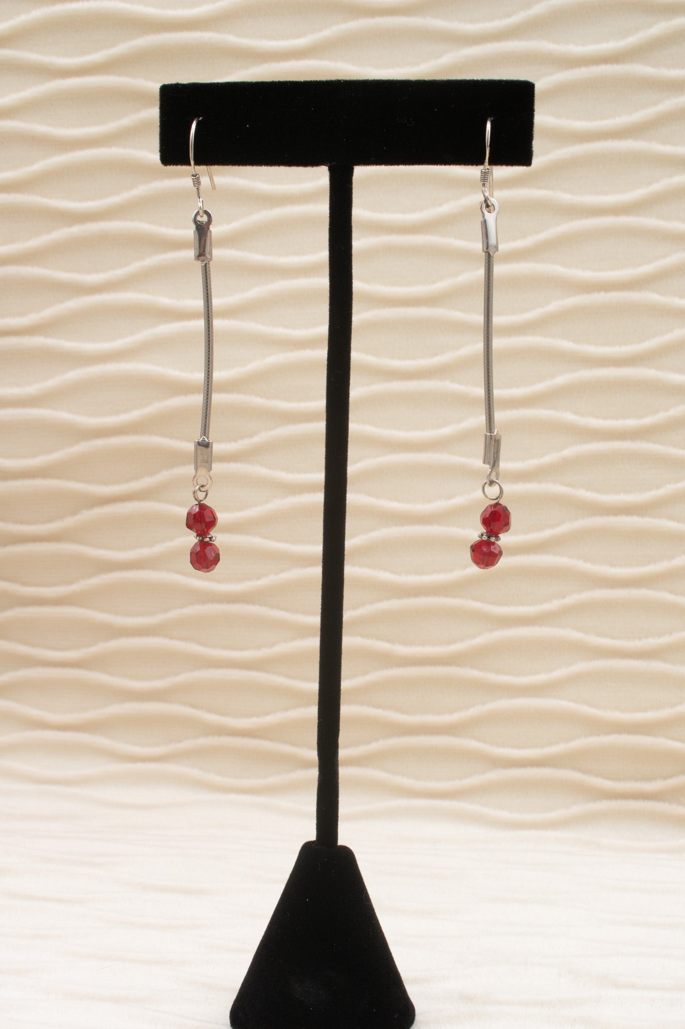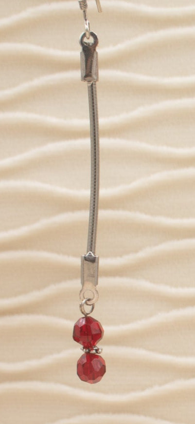 Homemade Dangle Silver and Red Bead Earrings