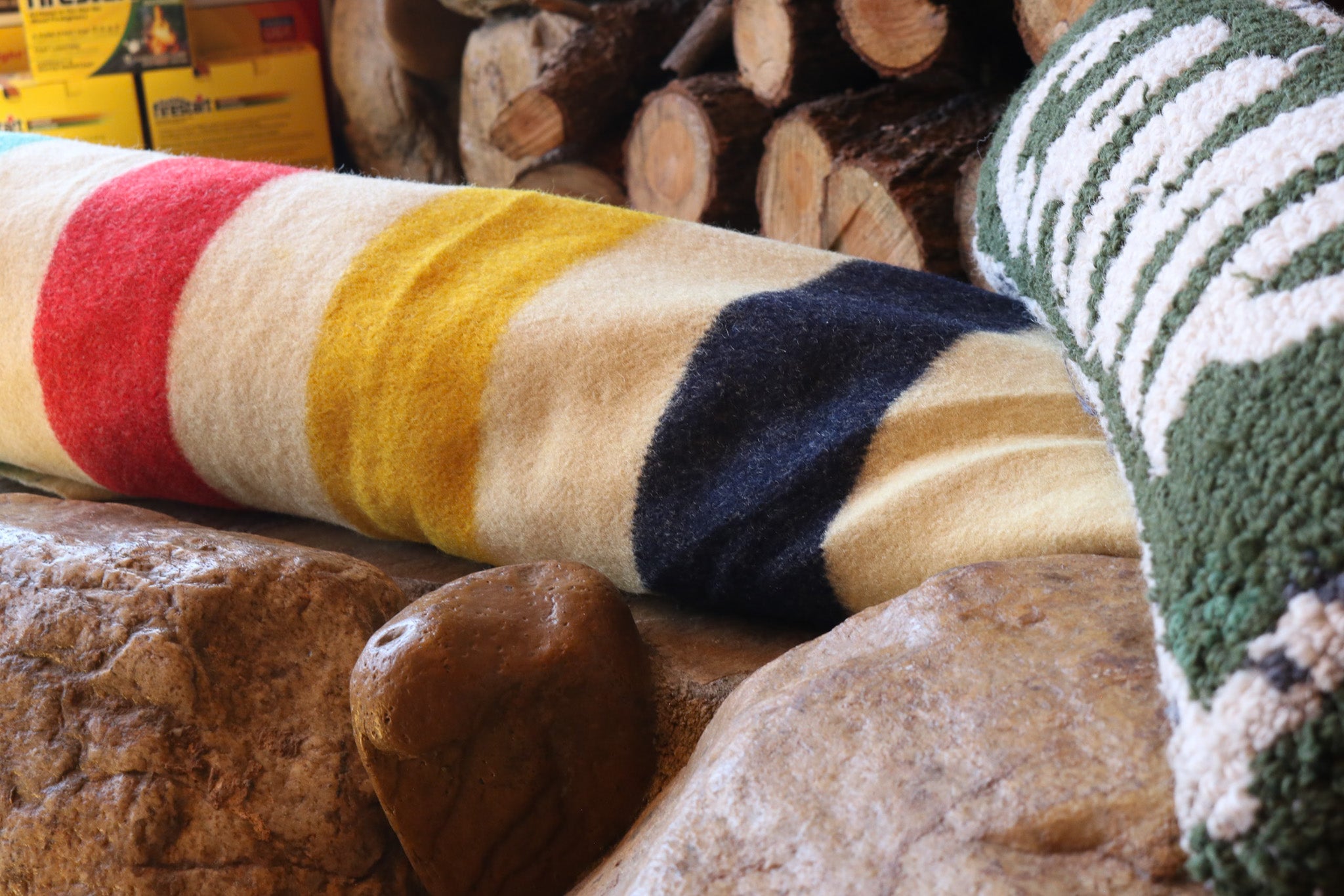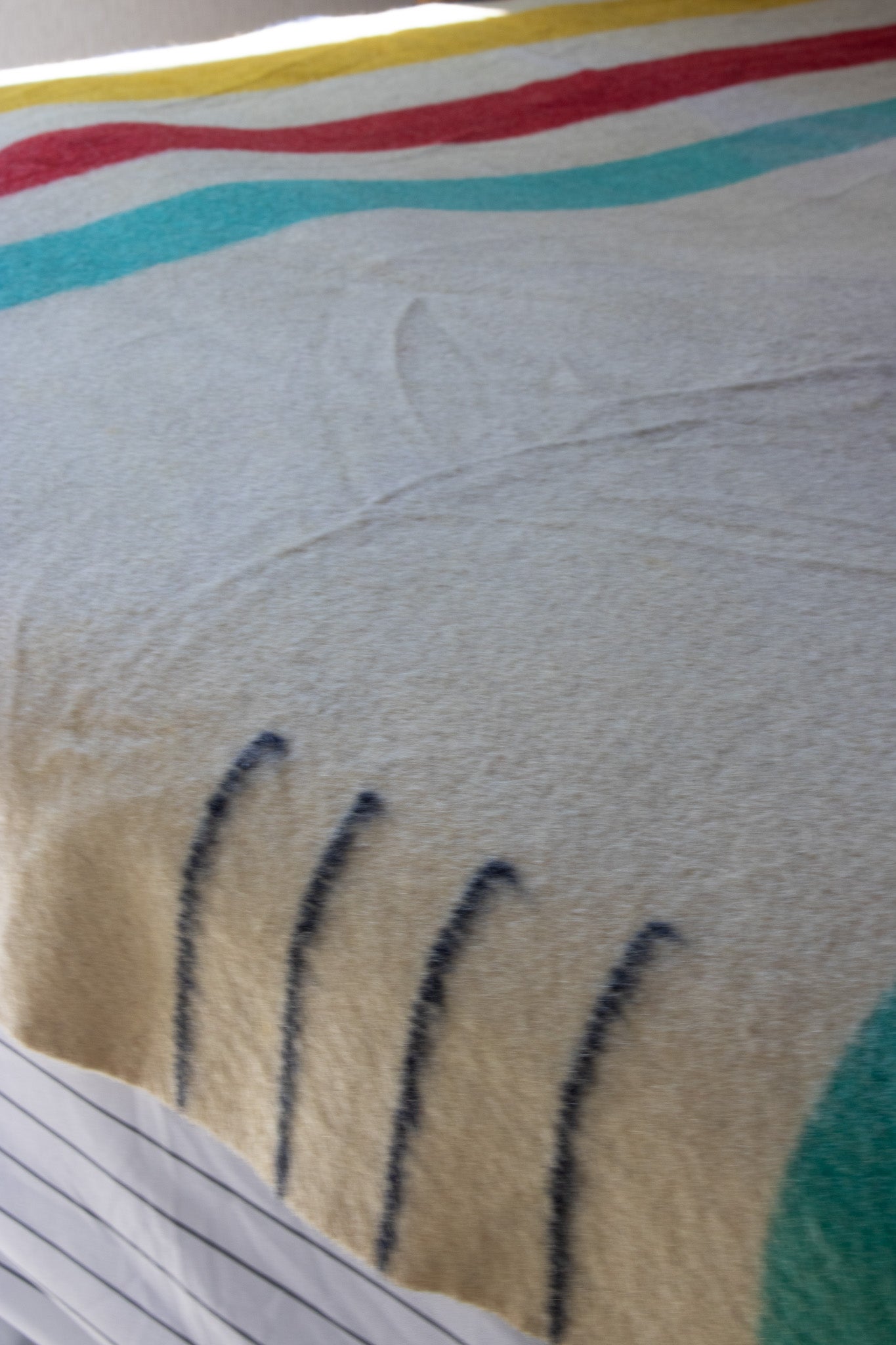 Hudson's Bay Point Wool Blanket Off-White Bold Multi-Colored Stripes