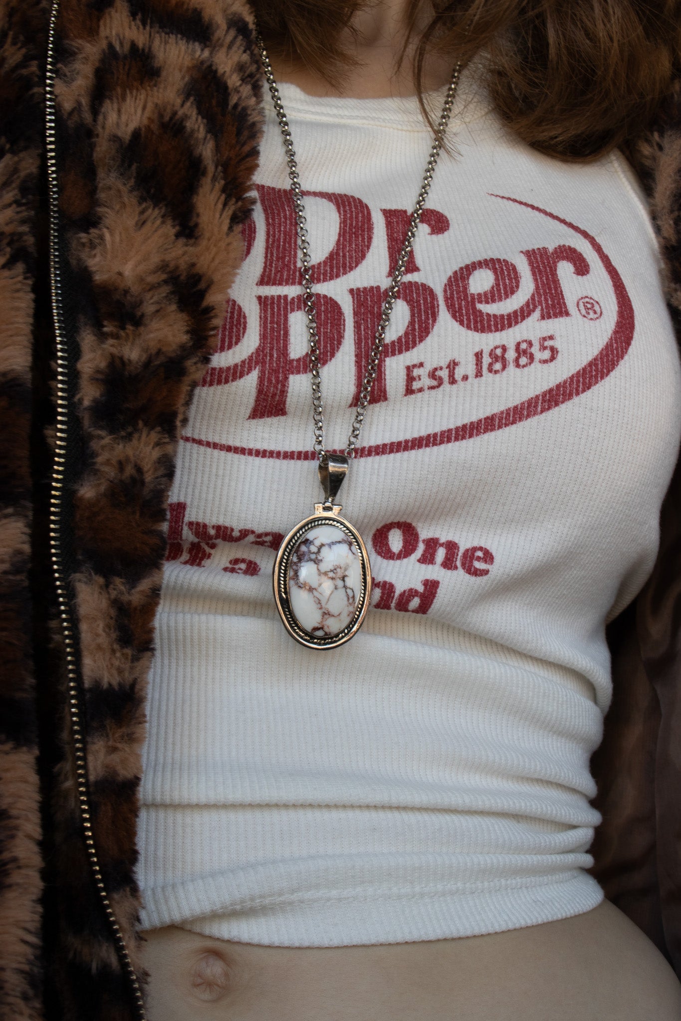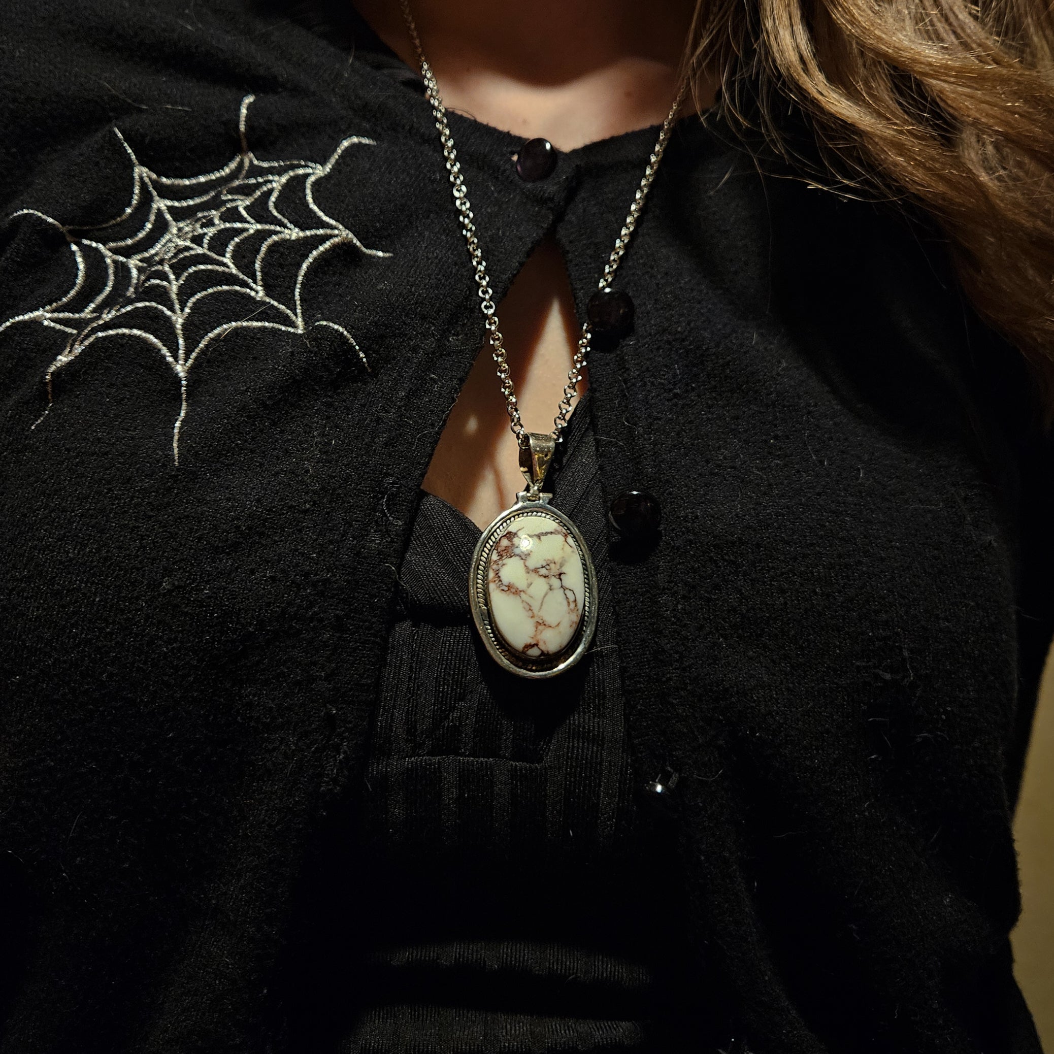 Large Natural Nevada White Turquoise and 925 Sterling Silver Pendant
