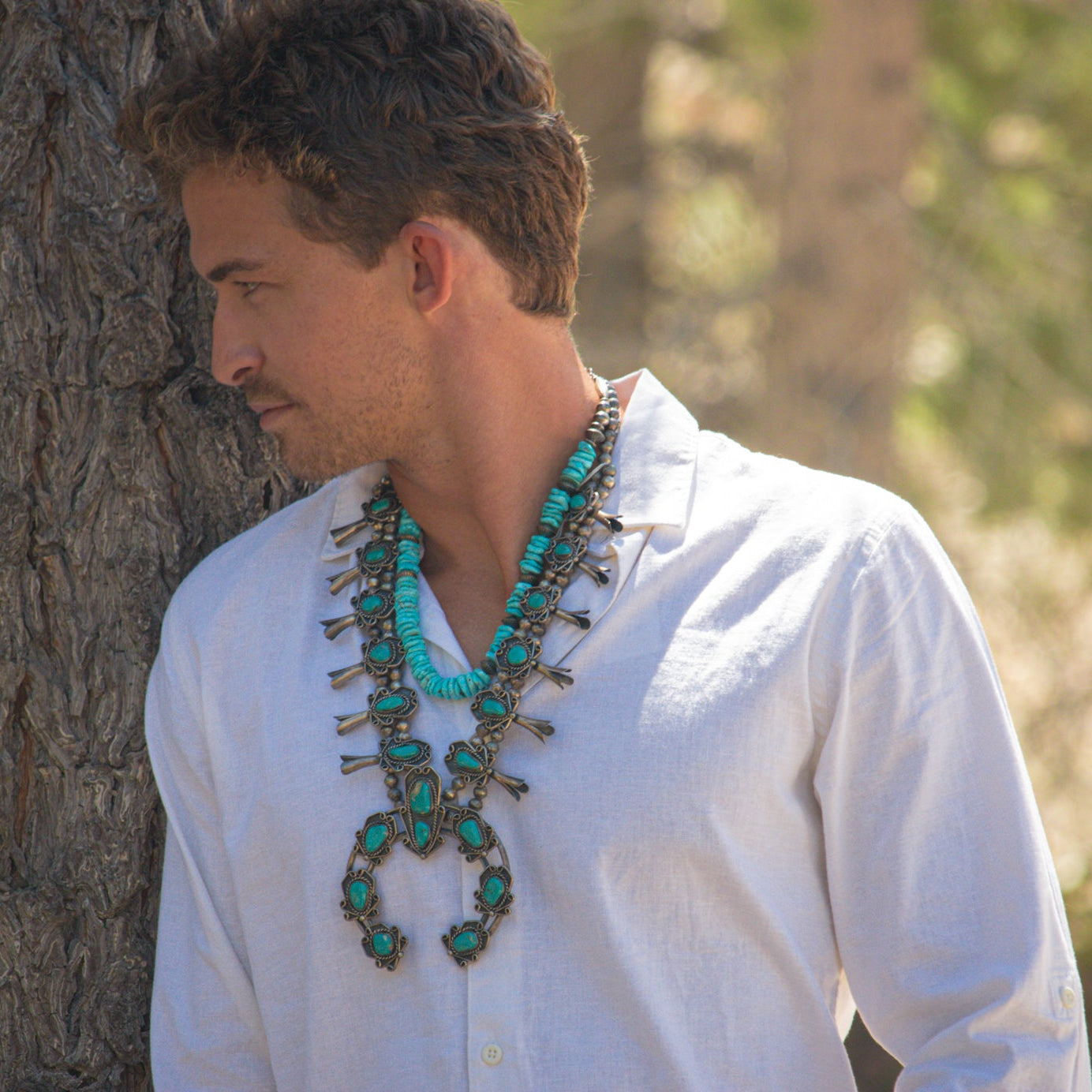 Vintage Navajo Sterling Silver Royston Turquoise Squash Blossom Necklace