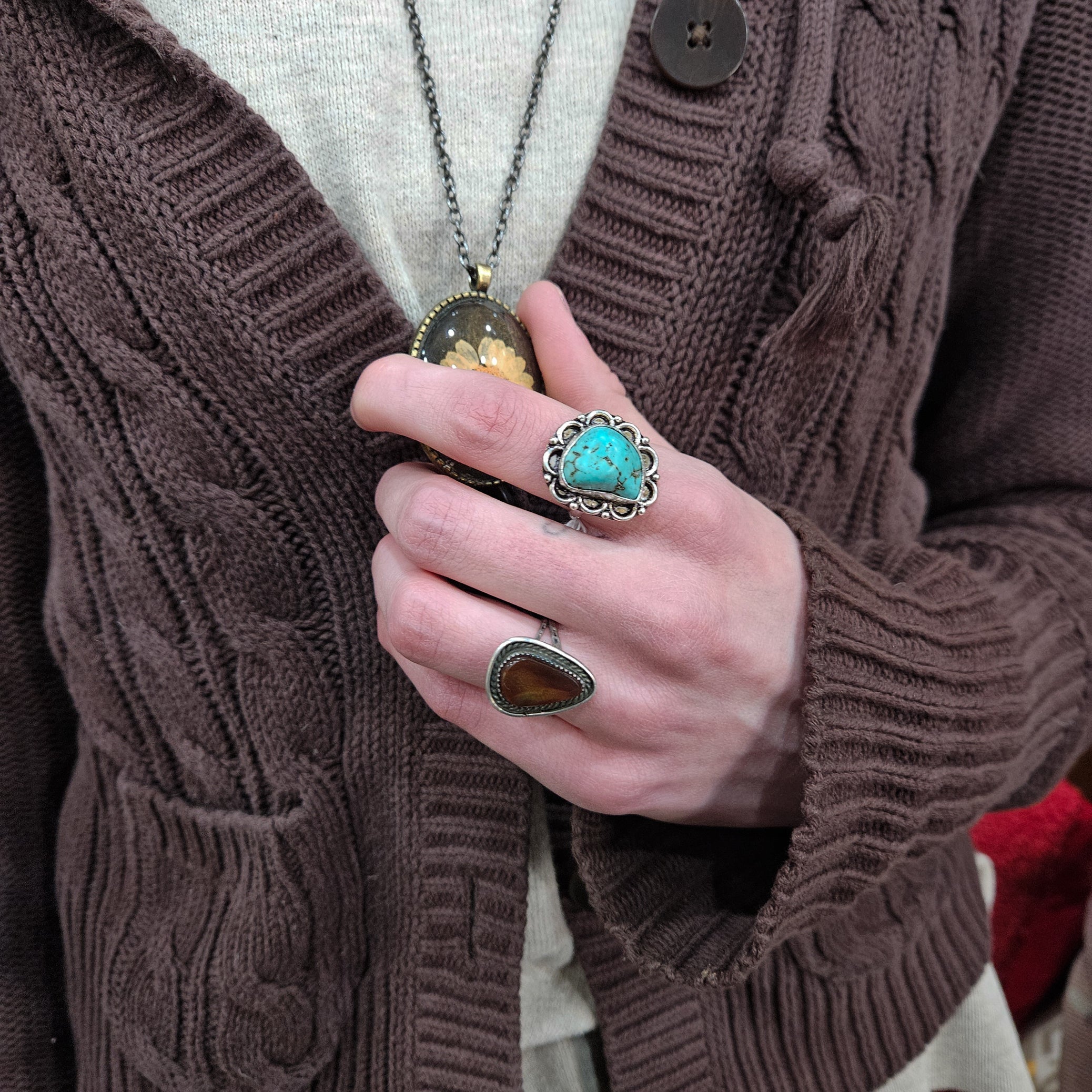 Navajo Fire Agate Gemstone Sterling Silver Ring Size 7