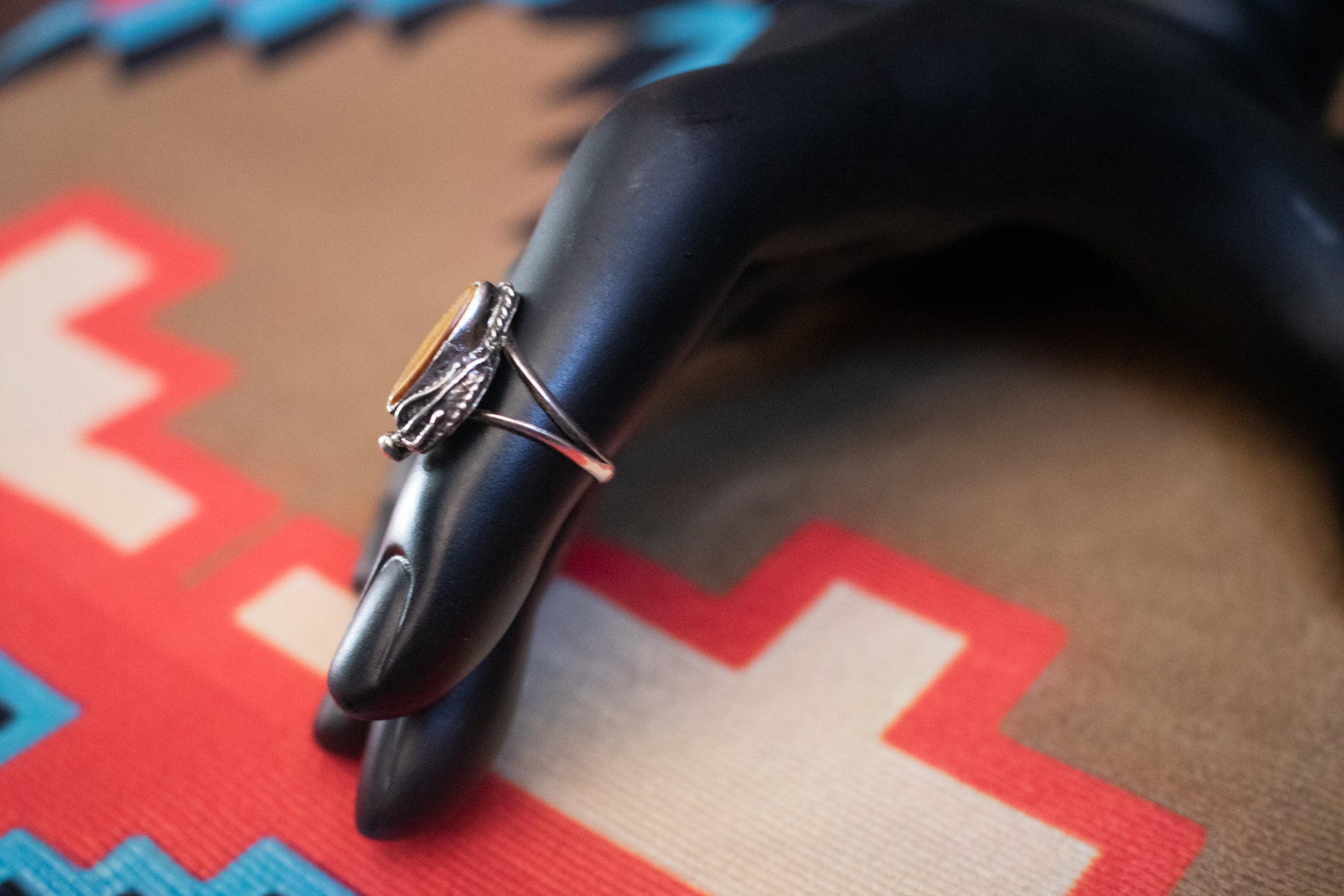 Tiger's Eye Sterling Silver Split Band Rings with Etched Feather Design- Size 3.5