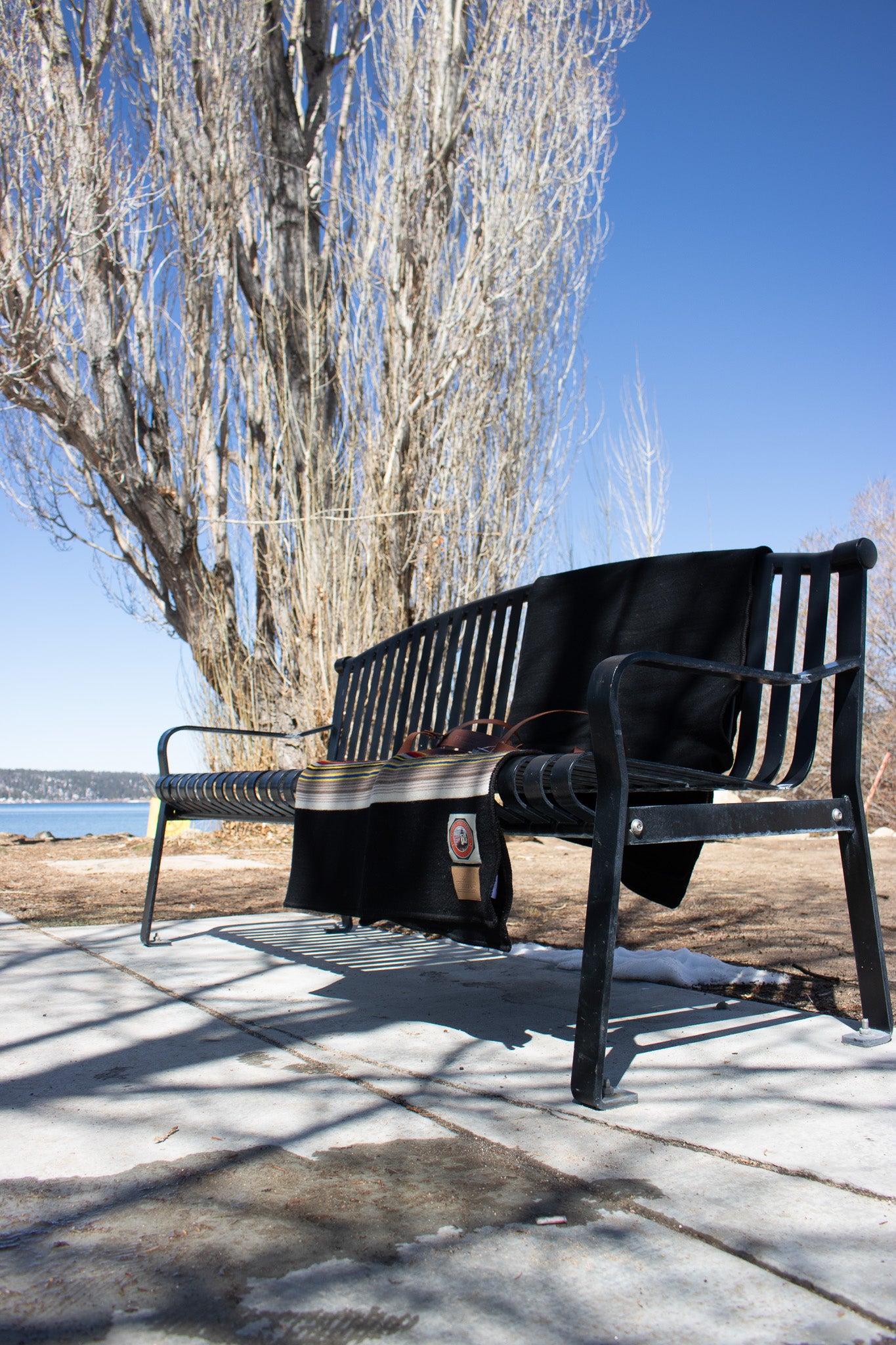 Black Pendleton Acadia National Park Throw Blanket with Leather Carrier