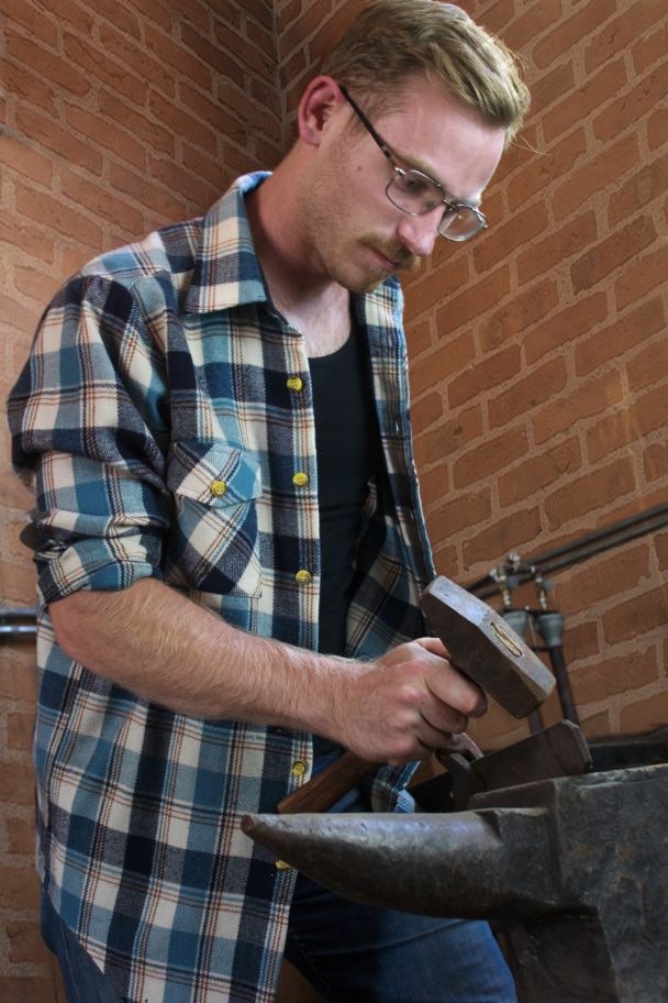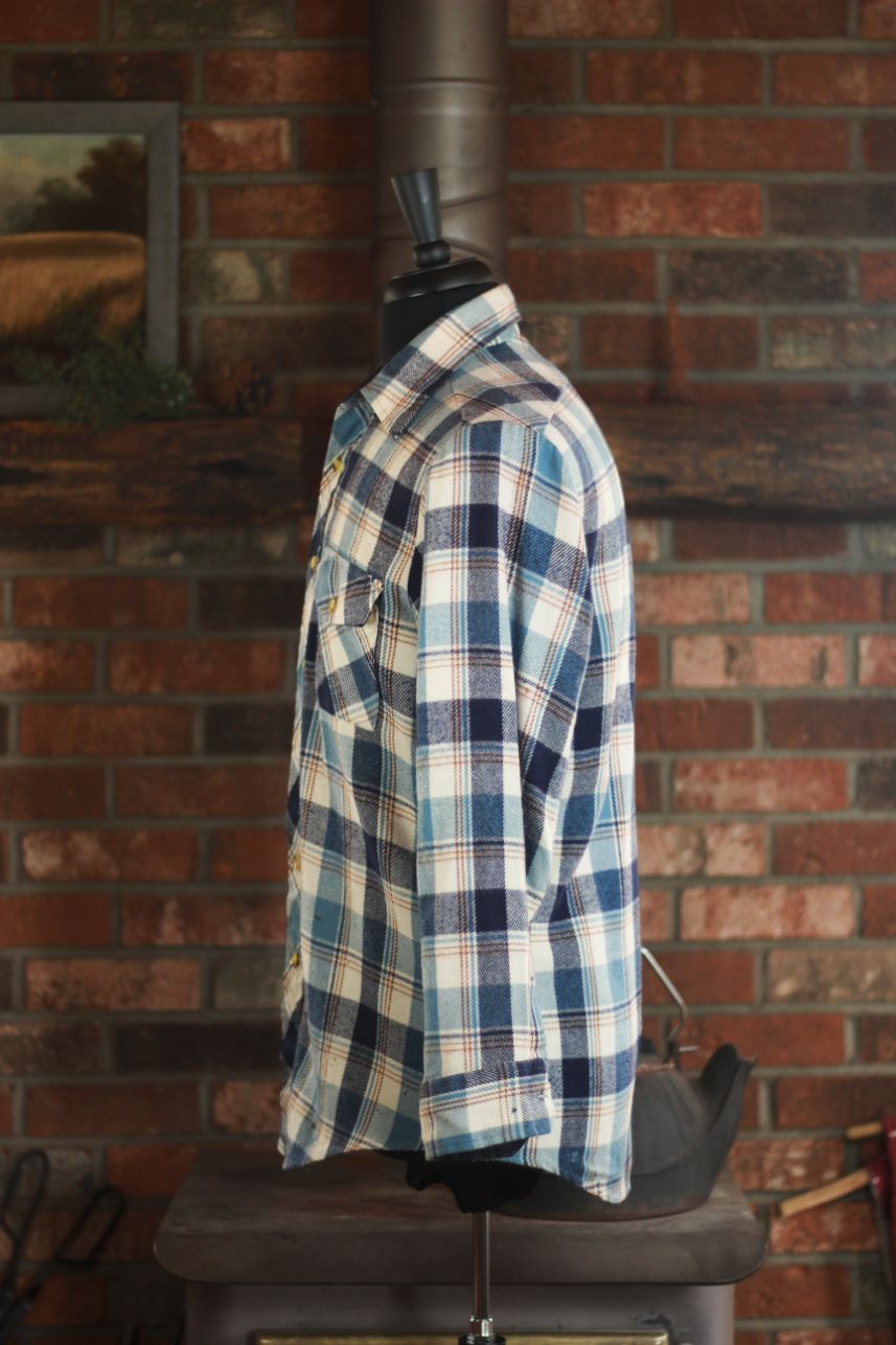 Sears 100% Acrylic Navy Blue, Light Blue, and Brown Plaid Flannel Button Up Men's M