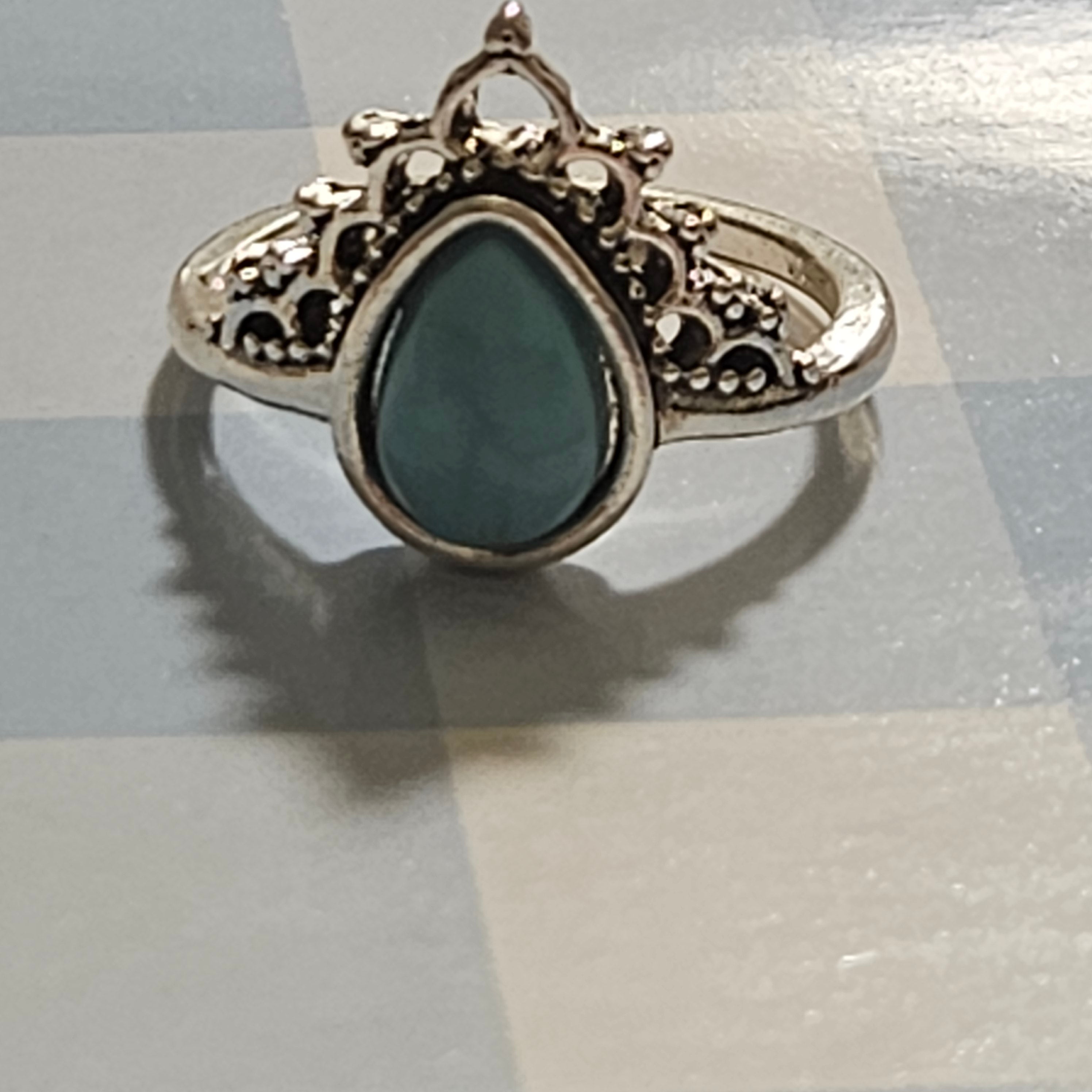 Bright Alloy Silver Plated Faux Turquoise Tear Ring Size 8.5
