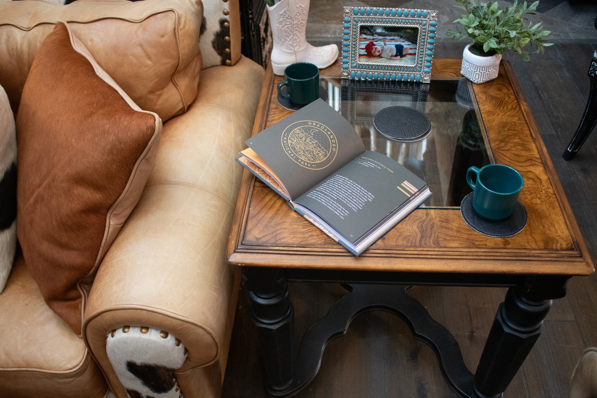 Square Coffee Table Top with Small Glass Inlay