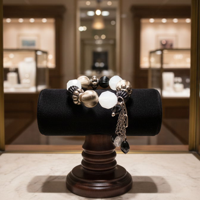 Stylish Chunky Retro Black and White Beaded Strech Bracelet