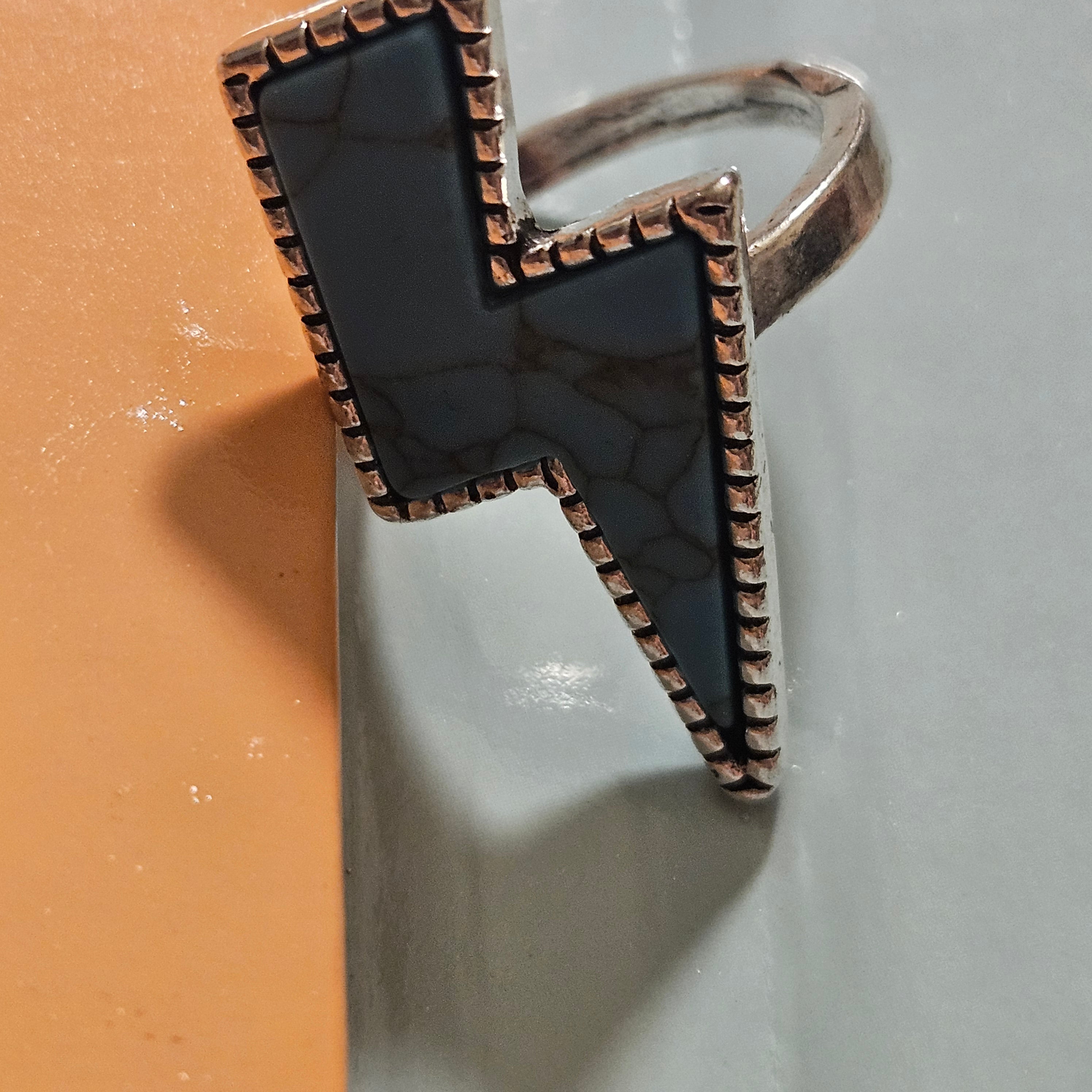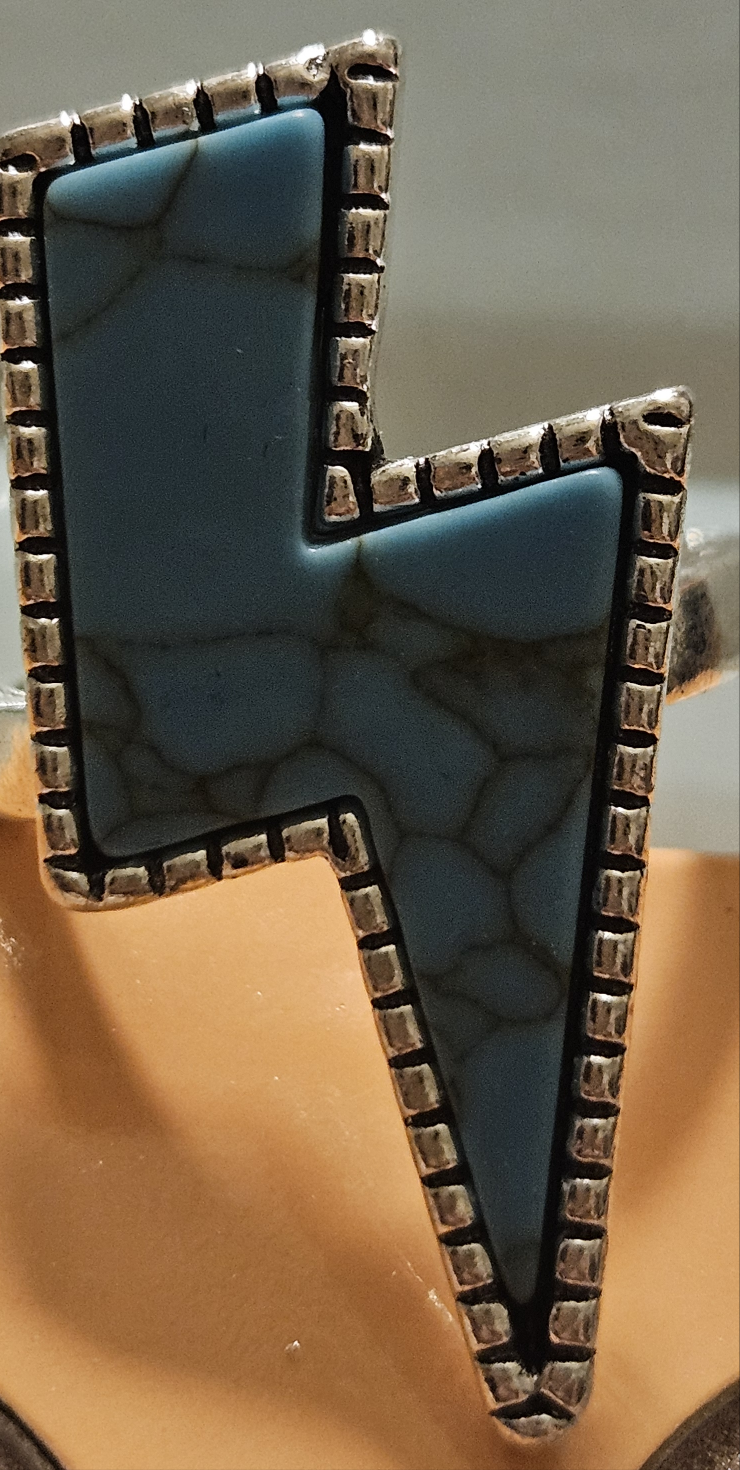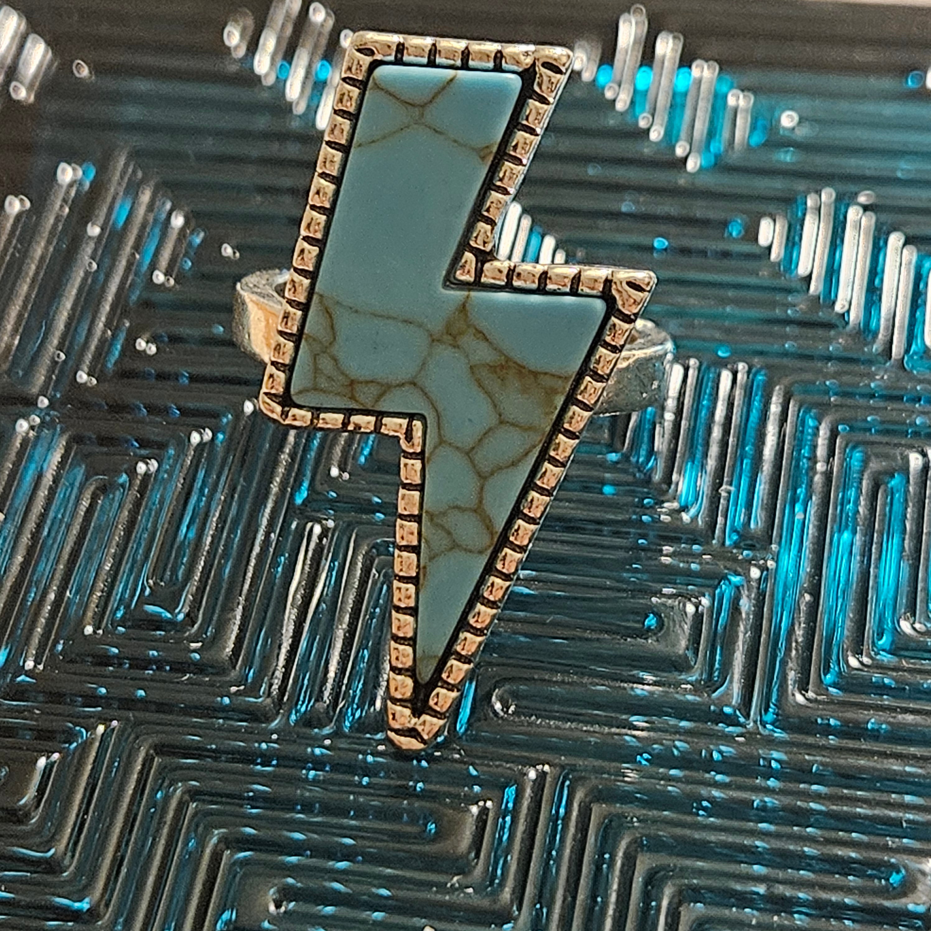 Faux Turquoise Lighting Bolt Alloy Silver Plated Ring Size 7