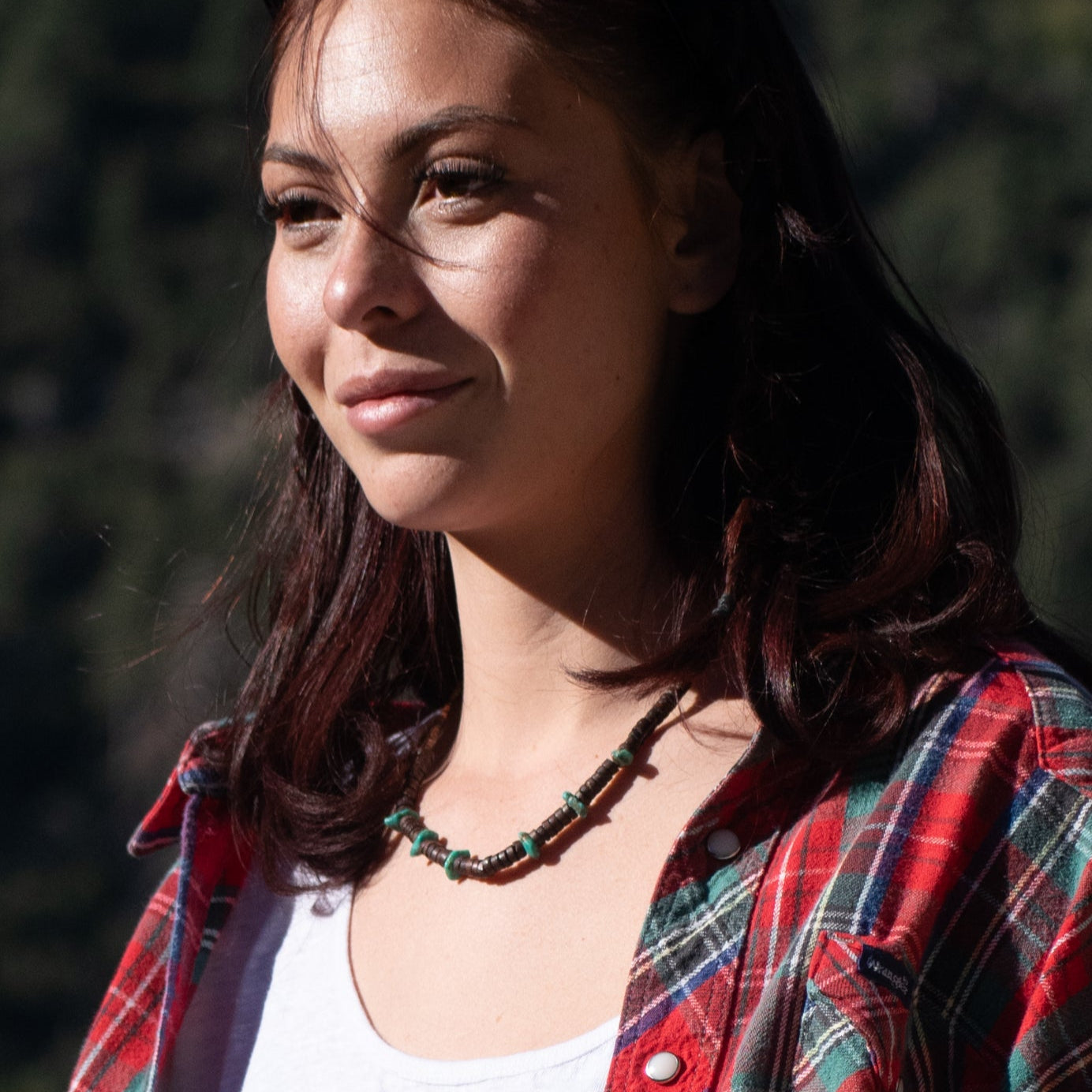 Vintage Navajo Native American Santa Rita Turquoise Necklace with Wooden Beads