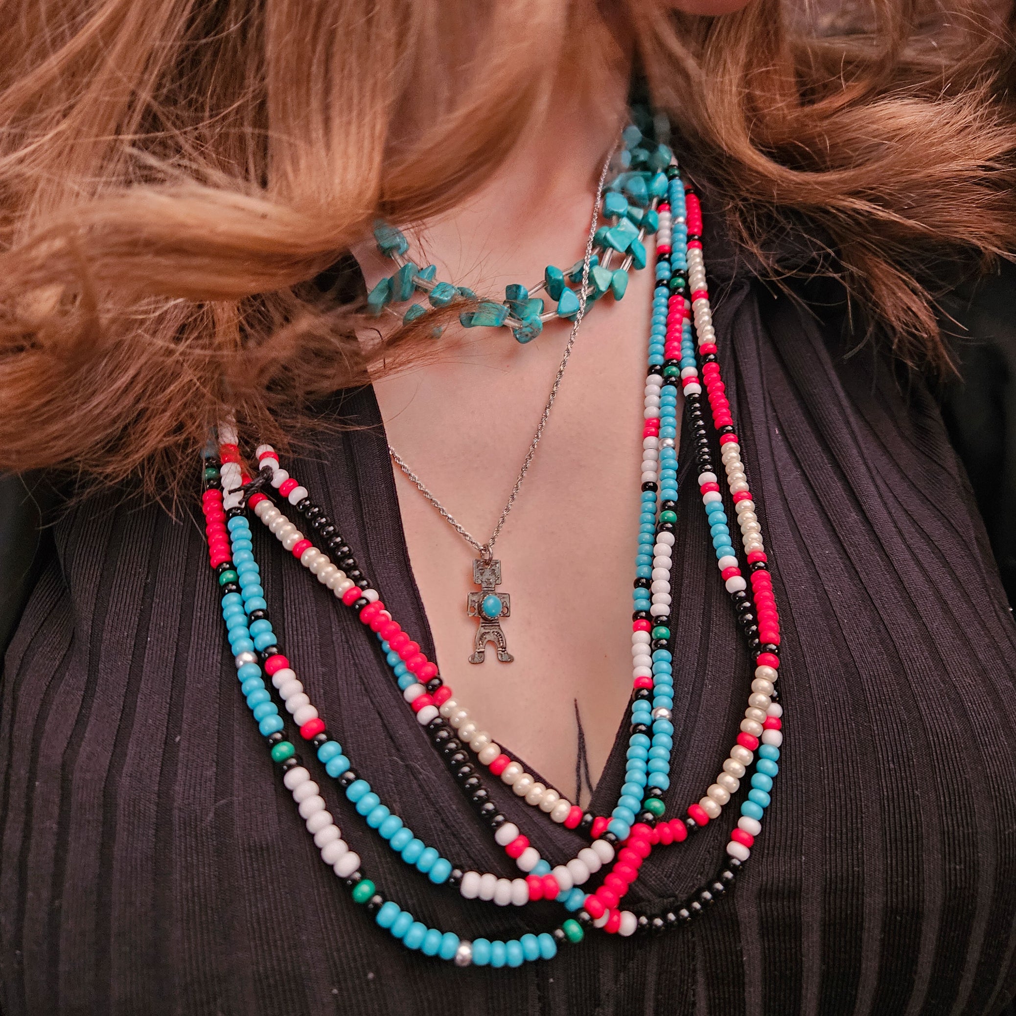 Vintage Sterling Silver Tiny Navajo Dancer Turquoise Pendant Harvey Era Native with Chain