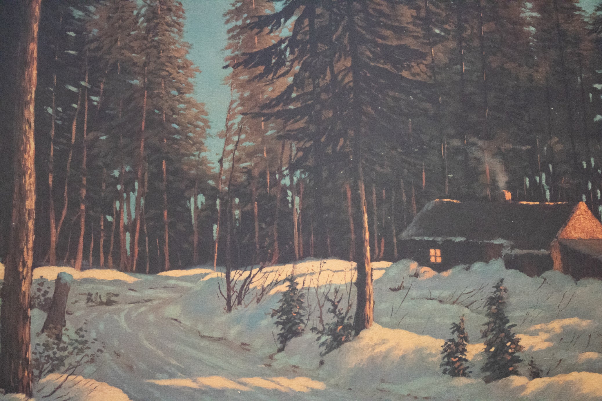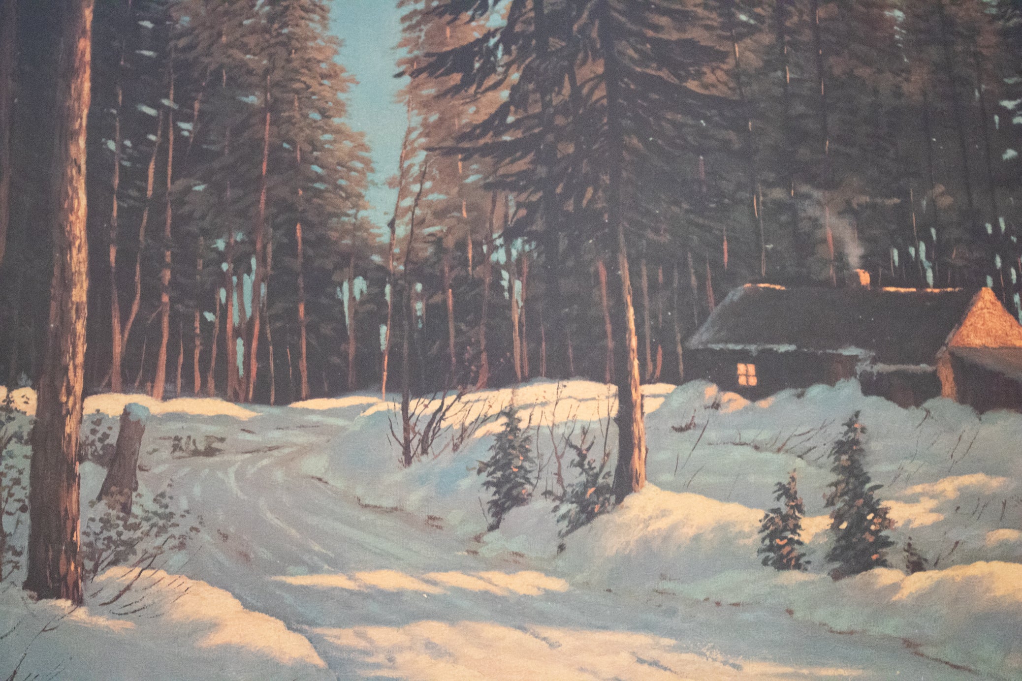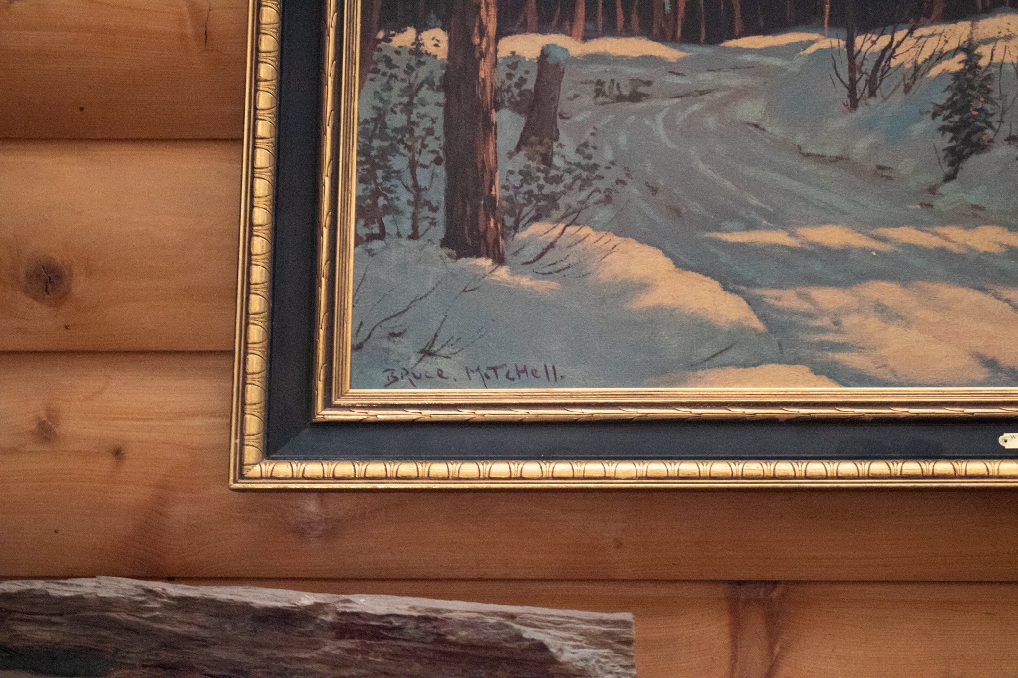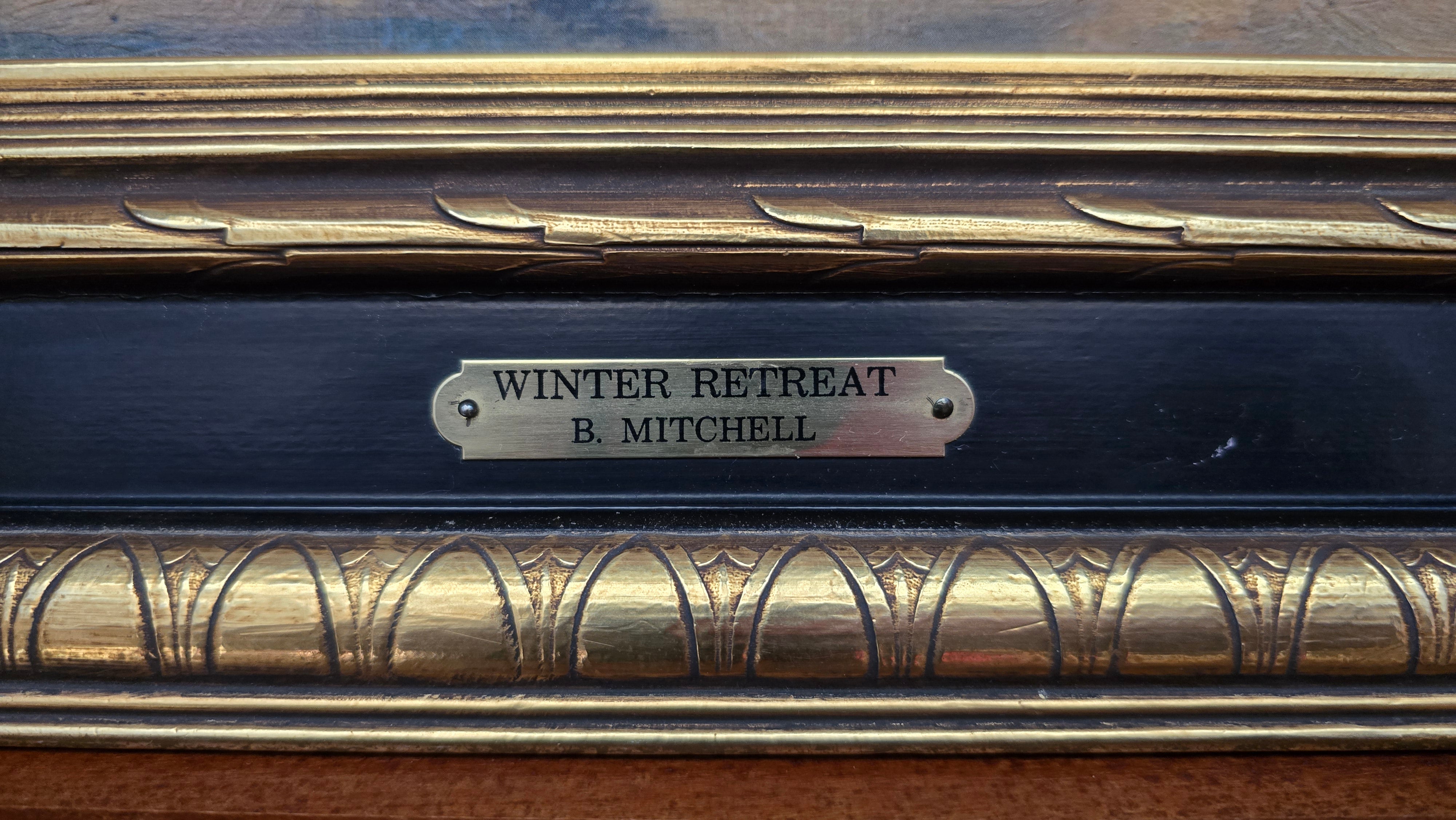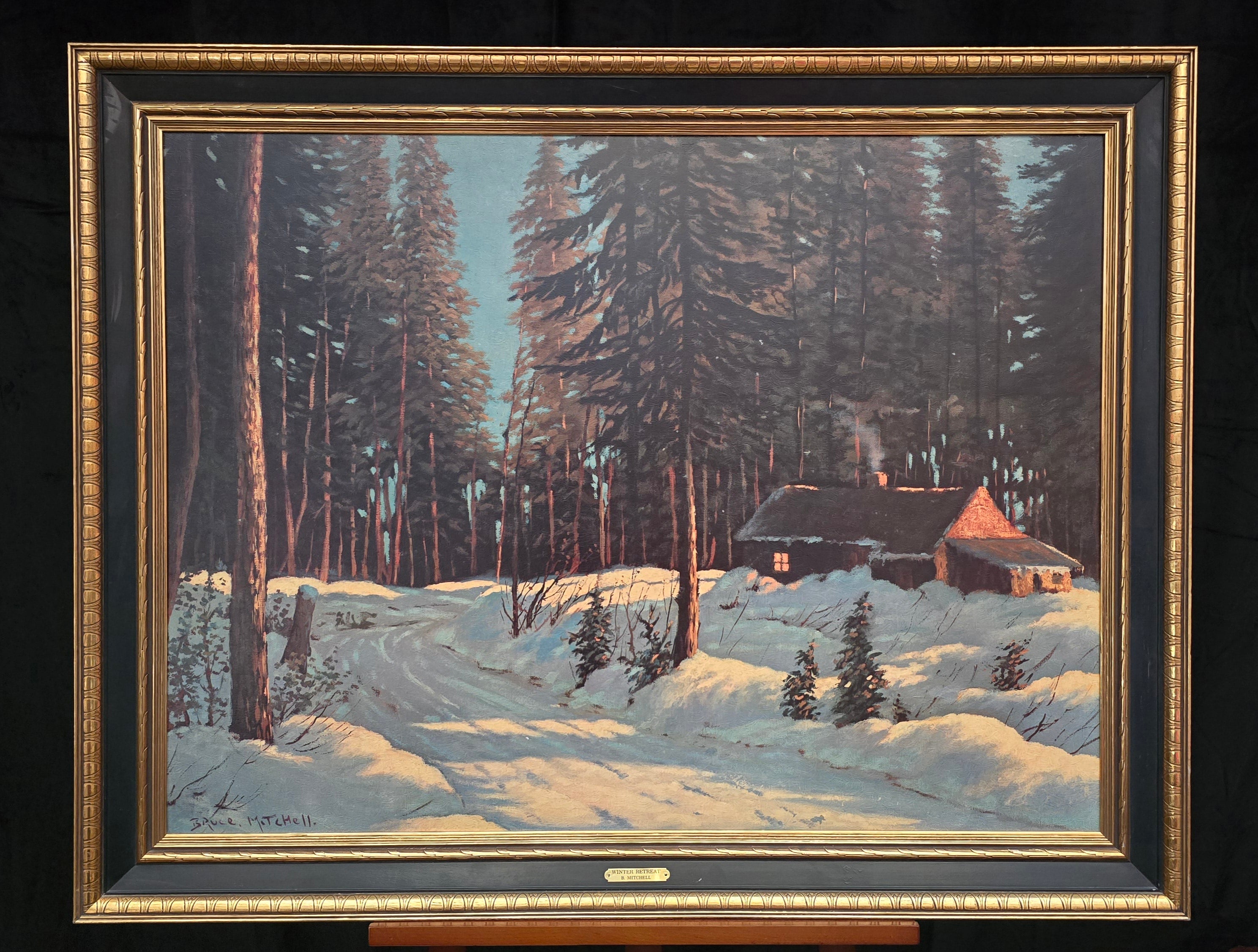 Framed Signed Bruce Mitchell "Winter Retreat" Landscape Cabin in the Woods Painting